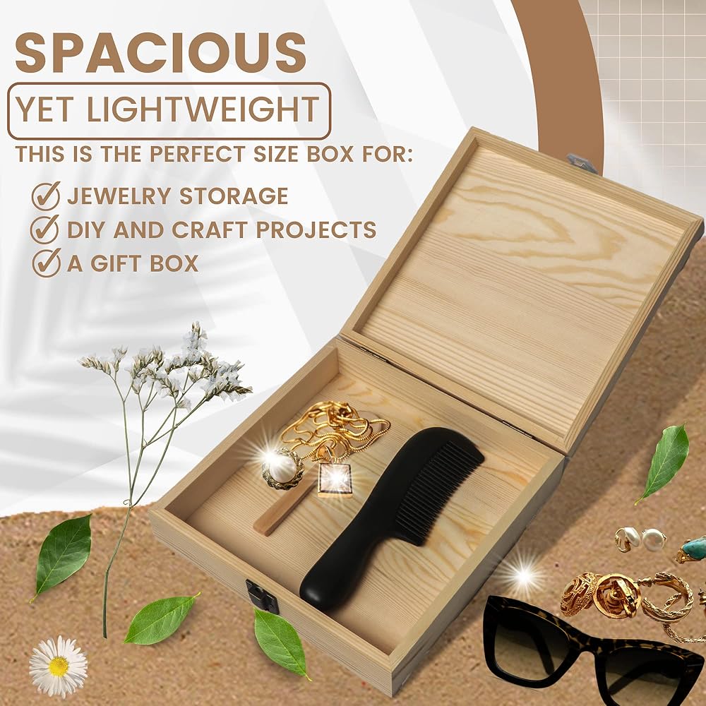 صندوق خشبي للحرف والتخزين - صغير ولكنه واسع بما يكفي لاحتياجات التخزين والحرفية، إنه صندوق رائع الحجم لتخزين المجوهرات، والمشروعات اليدوية الصغيرة، وكصندوق هدايا.