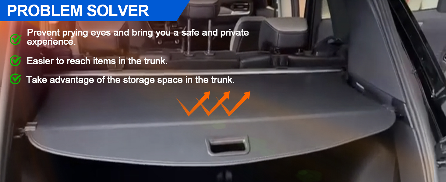• 【حل المشكلات】منع أعين المتطفلين ويمنحك تجربة آمنة وخاصة. من الأسهل الوصول إلى العناصر الموجودة في صندوق السيارة. استفد من مساحة التخزين في صندوق السيارة