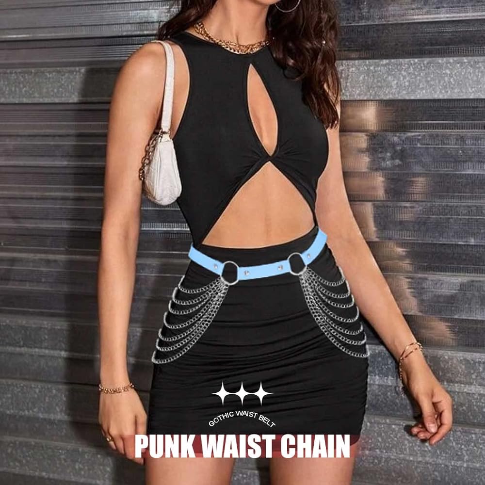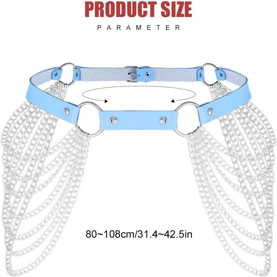 طول الخصر على شكل سلسلة خصر قوطي بمقاس حر، المقاس مناسب لجميع النساء والفتيات. طول قابل للتعديل أسهل ليناسب جسمك.