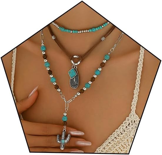 • قلادات بوهو تشوكر: طراز بوهيمي، ملابس يومية غير رسمية، هذه القلادة الفيروزية ذات الطبقات الفضية يمكن أن تضيف إحساسًا بالأناقة، وتعزز مظهرك العام.
