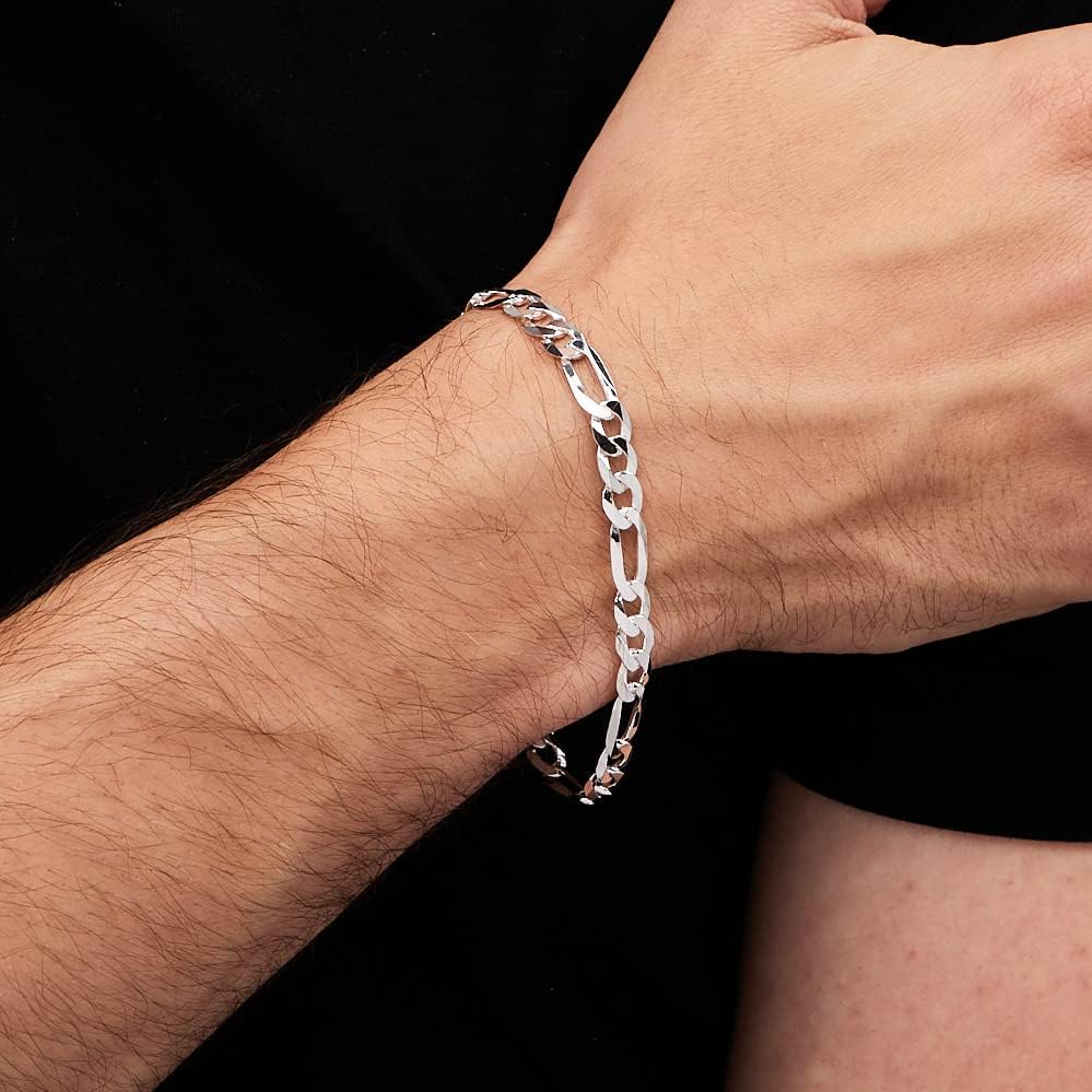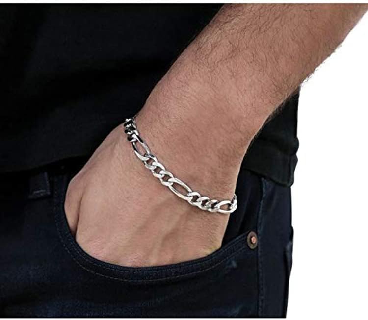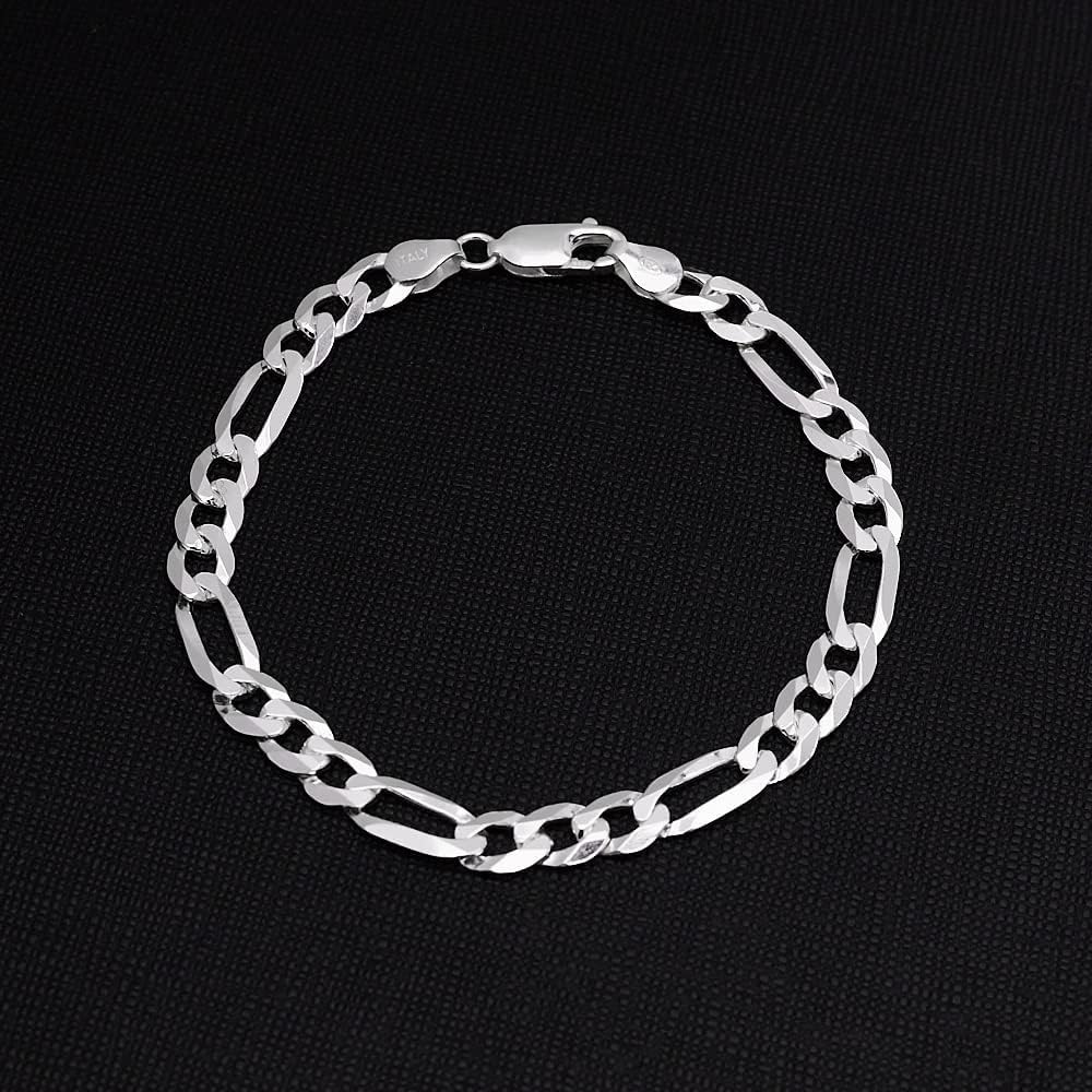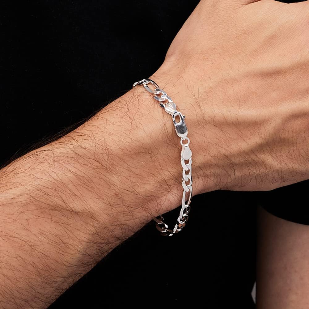Quality Men's Silver Bracelet: High quality guarantee Mens 925 sterling silver Figaro chain Bracelet for men women