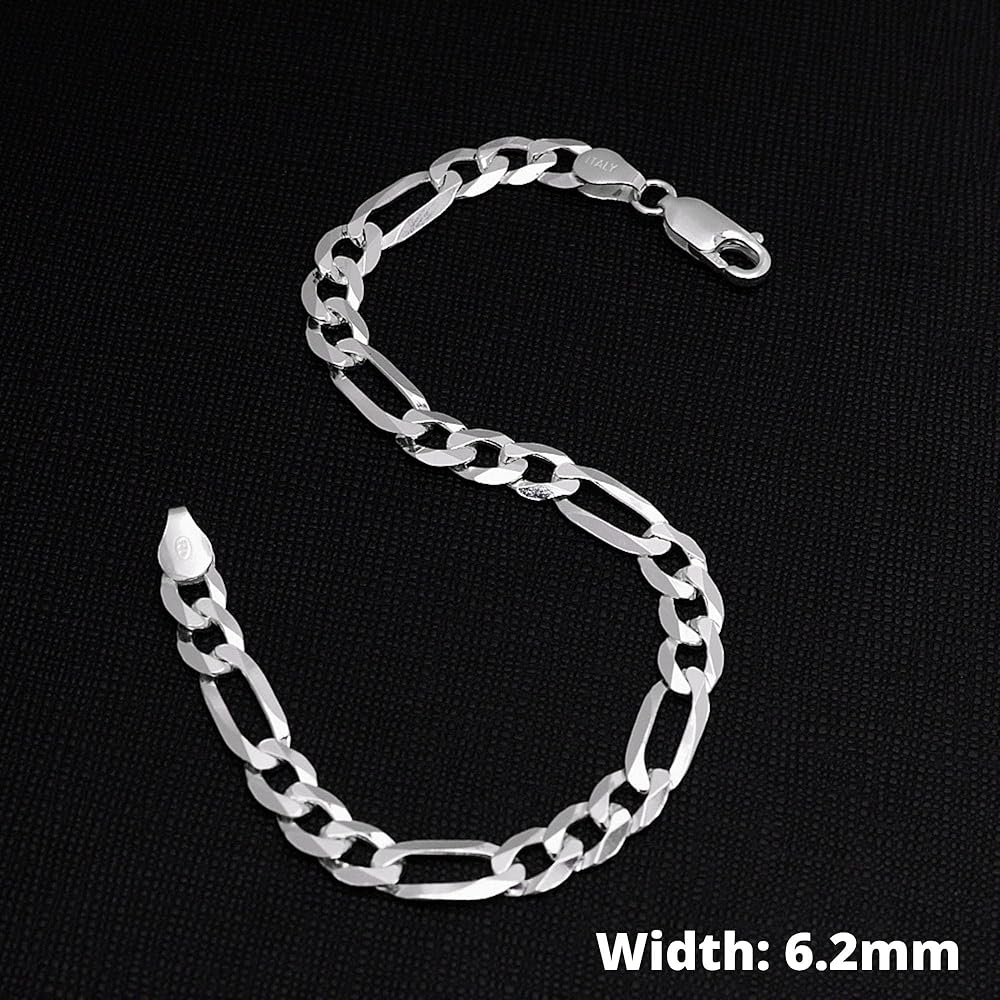 Italian made from quality solid 925 sterling silver figaro design, 6.2mm width Featuring Lobster Claw clasp.