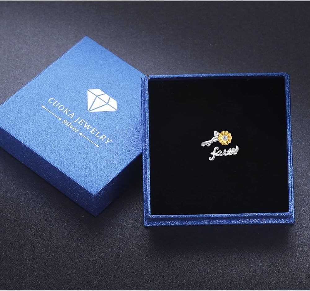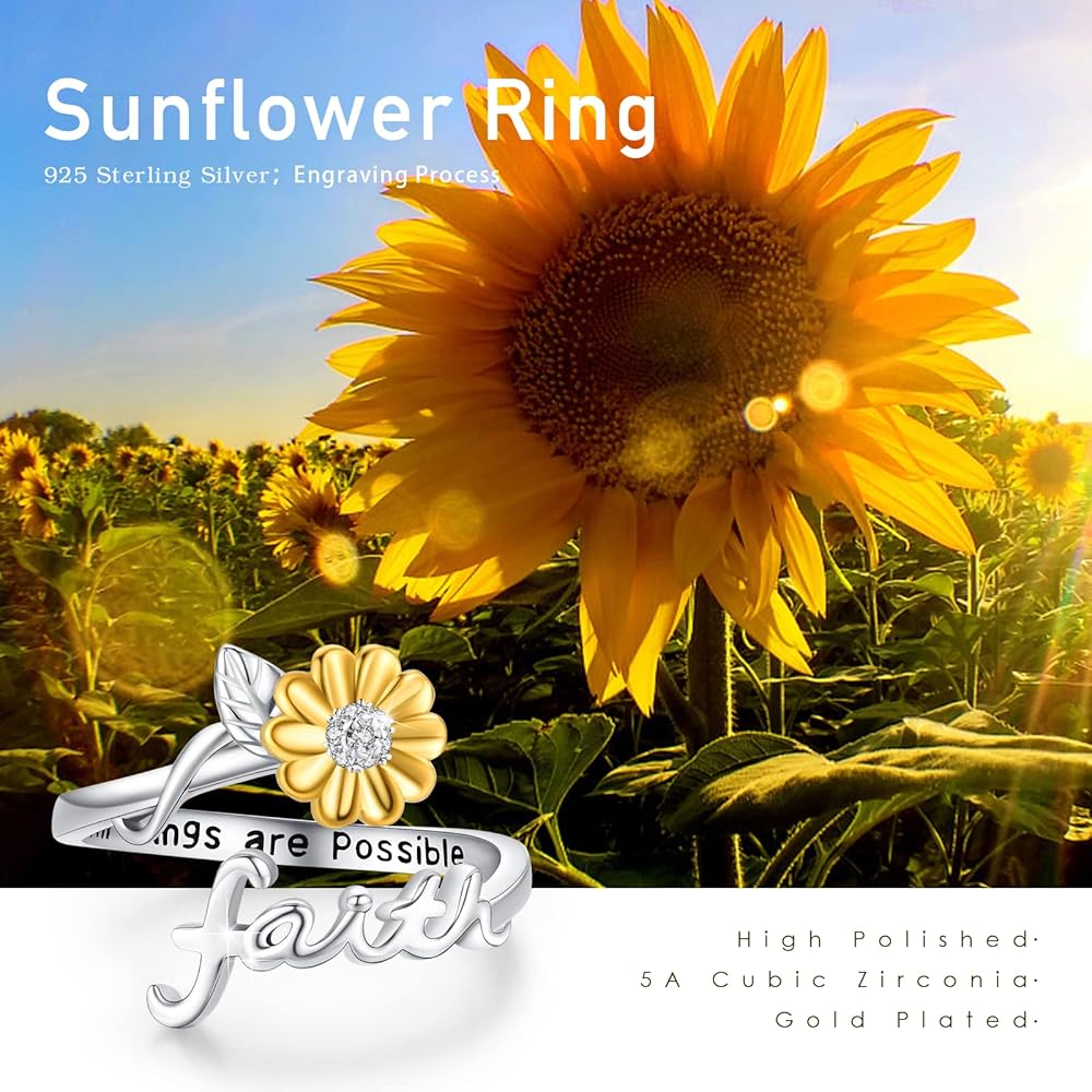 This Sunflower cross faith ring is BEAUTIFUL!!! I love that it's dainty and can be worn when I dress up or down. Nicely packed for gifting.