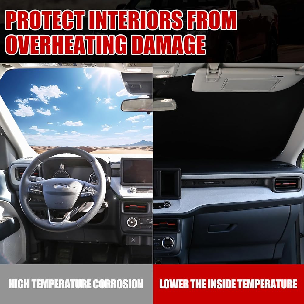 توفر ملاءمة مخصصة: مصممة خصيصًا لسيارة Ford Maverick 2024 2023 2022، تناسب المظلة الزجاج الأمامي وتترك مكانًا لكاميرا أجهزة القياس.