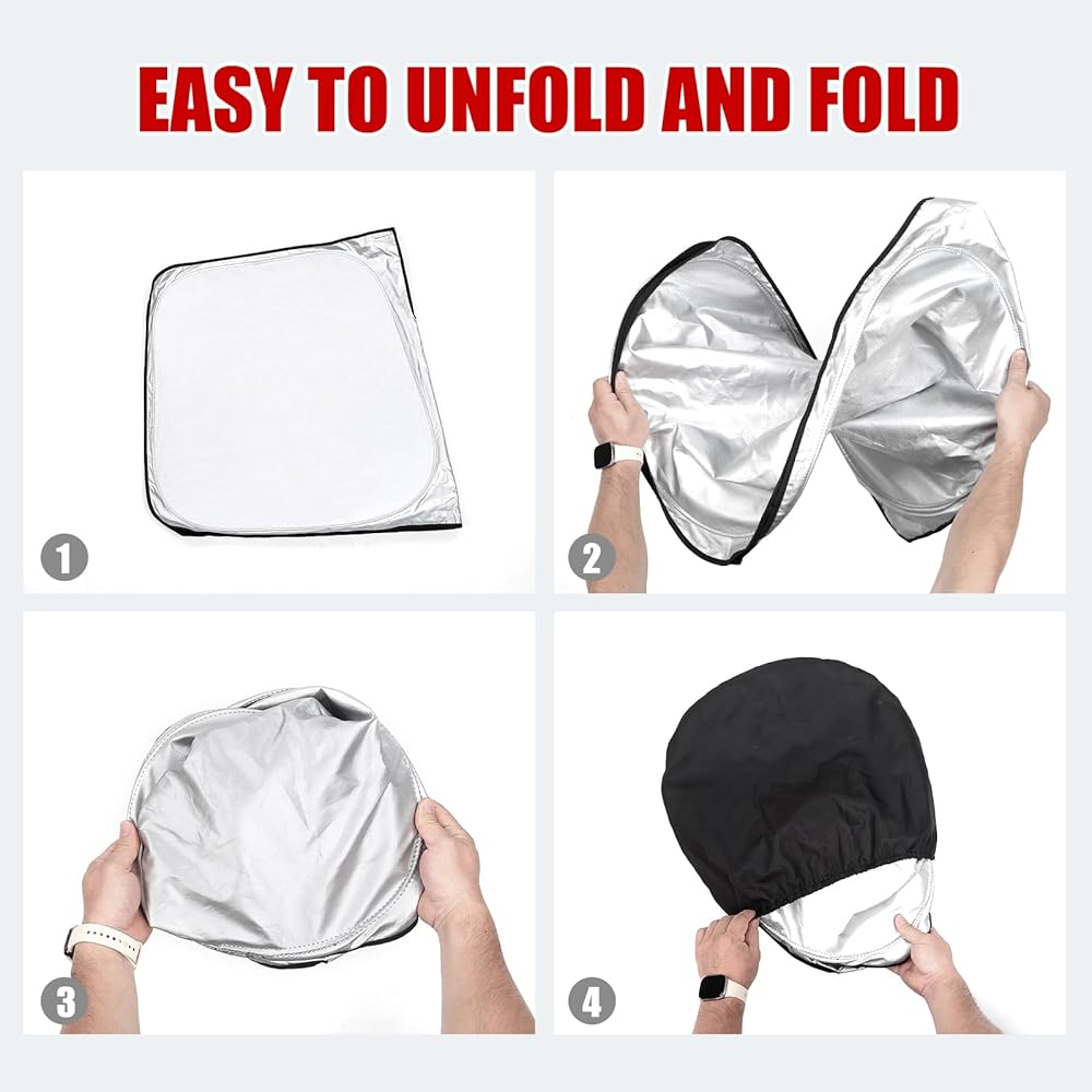 حقيبة تخزين إضافية: مزودة بحقيبة تخزين لتقليل المساحة في السيارة. ما عليك سوى طي هذا الظل ووضعه في الحقيبة عندما تكون على وشك القيادة.