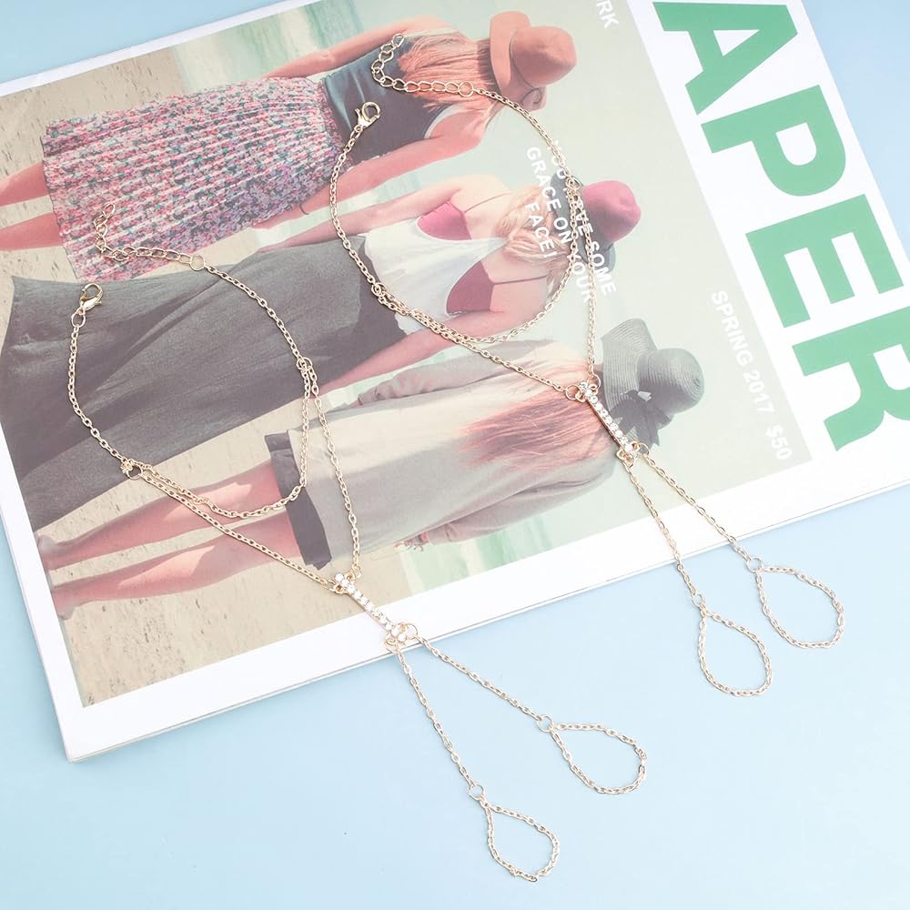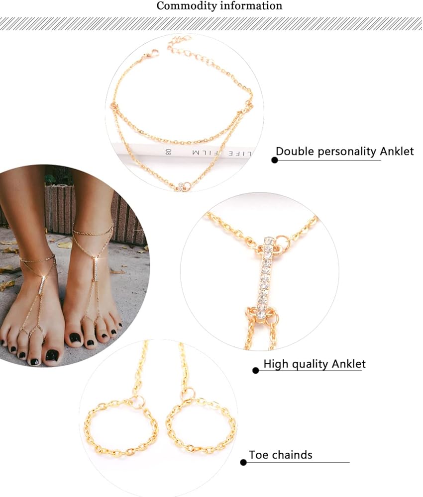 شريط اصبع القدم خاتم خلخال أحجار الراين الذهب صنادل بيرفوت سلسلة اصبع القدم خلخال سوار الحد الأدنى سوار الكاحل اصبع القدم سلسلة خلخال سلسلة القدم مجوهرات للنساء 2 جهاز كمبيوتر شخصى