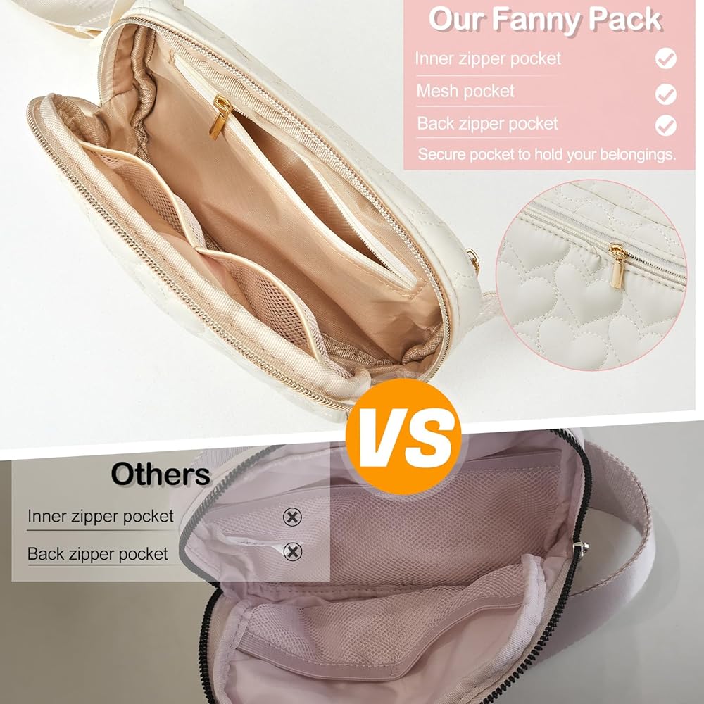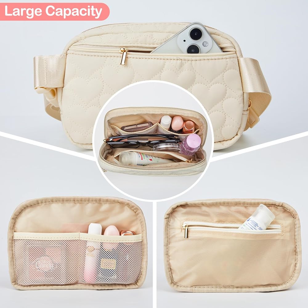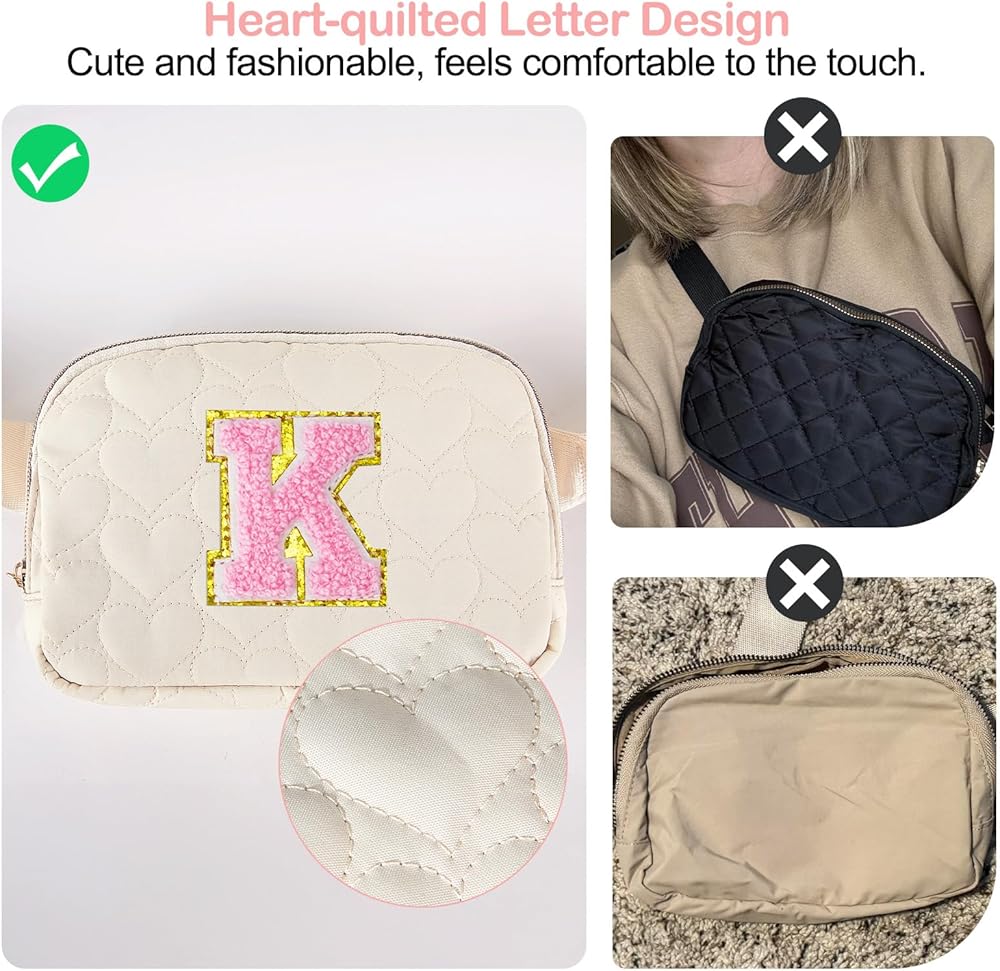 تصميم فريد من نوعه من Fanny Pack: تصميم مبطن على شكل قلب مع حقيبة حزام على شكل حرف، نمط فريد، يمكنك ارتداء حقيبة فاني عبر الجسم بعدة طرق، ويمكن استخدامها كحقيبة كروس أو حقيبة خصر أو حقيبة كتف أو حقيبة يد