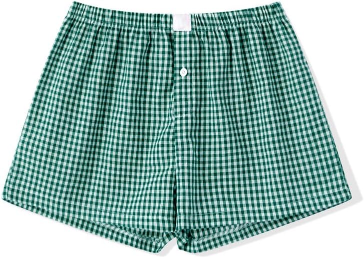 Design:Button front, loose fit, elastic waist, above knee length.Women casual plaid shorts, boxers for women baggy,y2k fairy grunge shorts, y2k plaid pajamas shorts, women cute plaid shorts, women stripe loose fit shorts, women casual solid shorts.