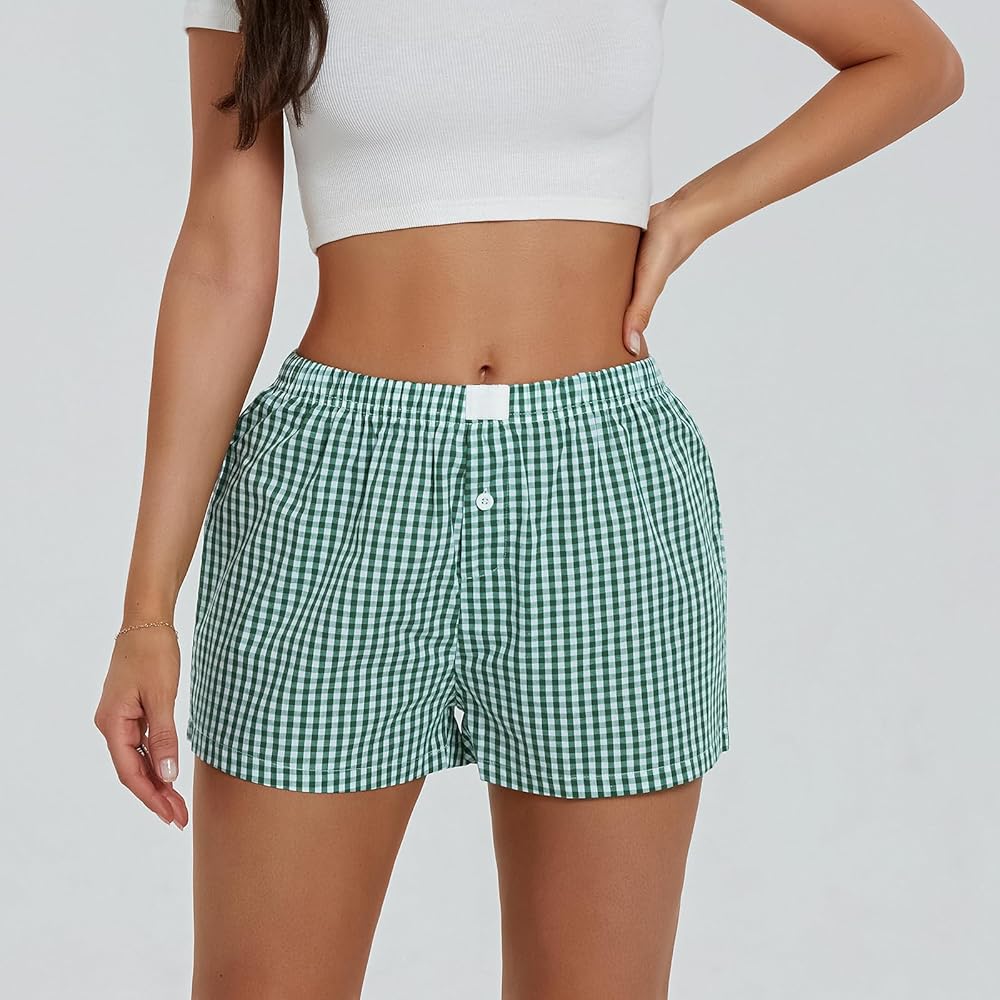 Style:Sleep shorts for women, women low waist pj shorts, micro gingham boxers shorts, plaid shorts sleepwear, lounge shorts cute boy shorts.Shorts can be paired with any shirt, outerwear, sandals, slippers, or sneakers.