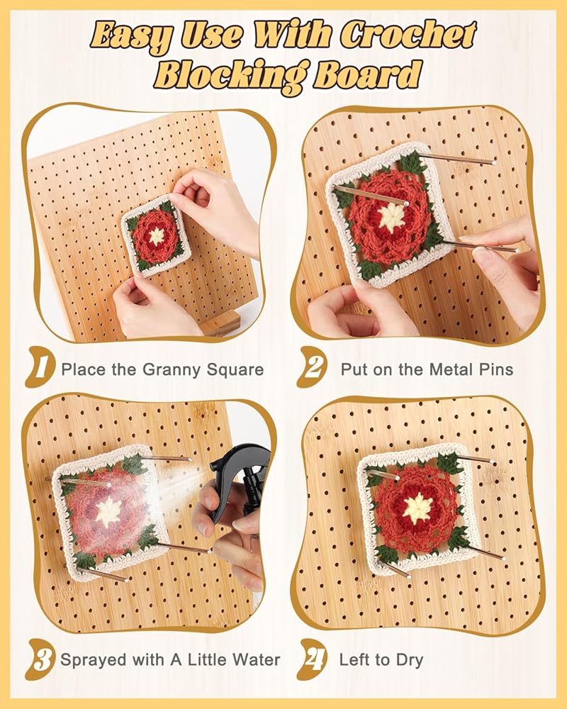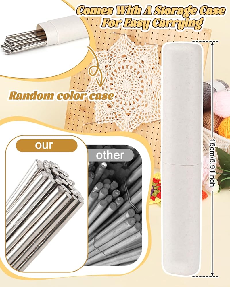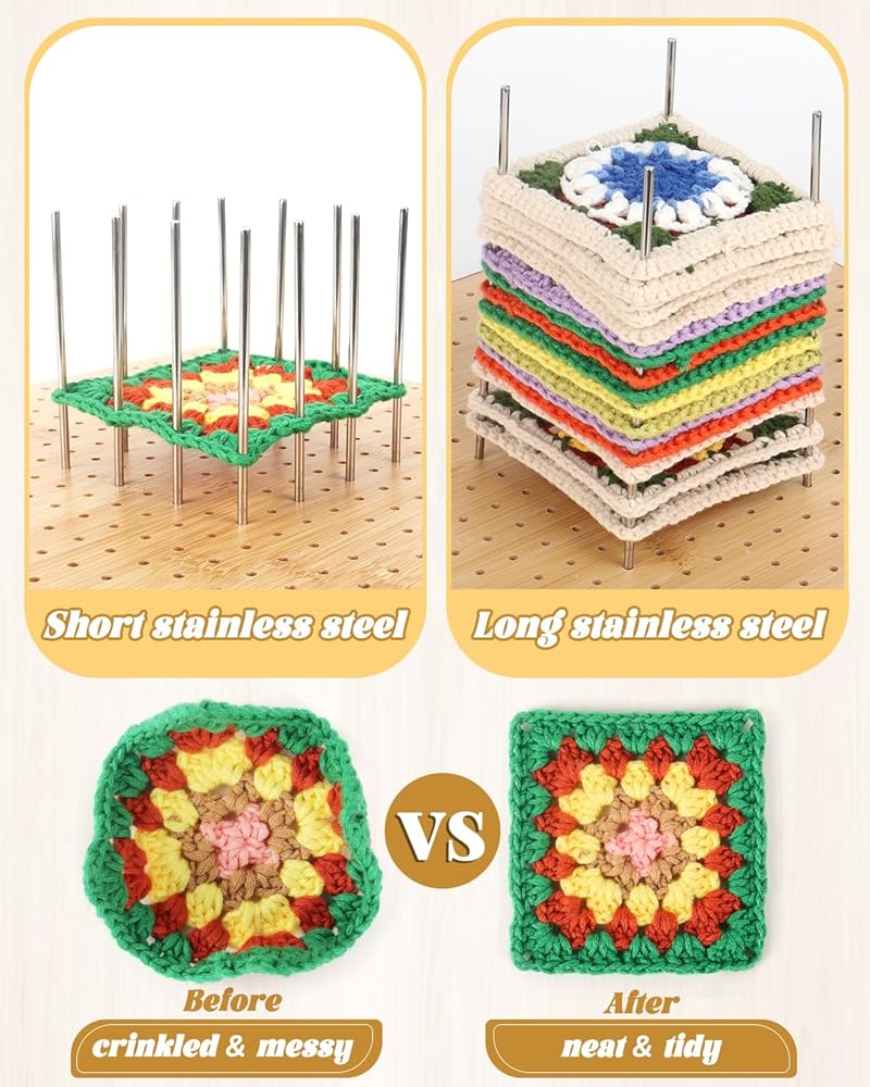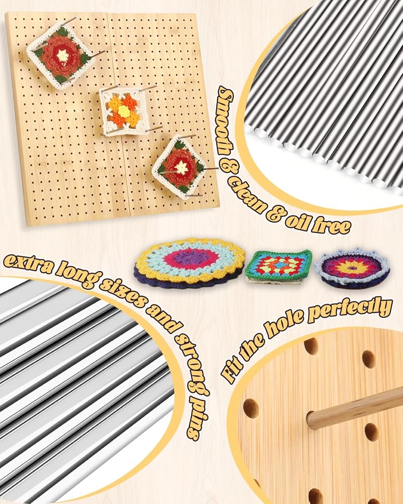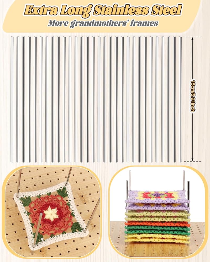 • Extra Long Stainless Steel Rod Pins: The long steel pins kit come with 30 pcs 15cm(5.91inch), and the extended steel pins can make more and thicker granny squares, you can block a lot of granny squares at one time, saving you time and effort.