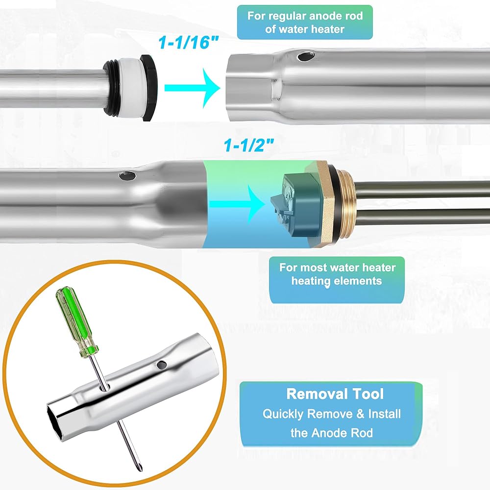 • 【قضيب أنود سخان المياه RV الممتاز】: قضبان أنود سخان المياه RV الخاصة بنا، بطول 9.25 بوصة مع وصلة NPT 3/4 بوصة، مصنوعة من سبائك المغنيسيوم AZ63 الممتازة، غير سامة وآمنة، تناسب معظم سخانات المياه RV في الضواحي. يمكن أن يمنع بشكل فعال تكثيف الترسبات الكلسية على الجدار الداخلي وأنبوب الحرارة، ويطيل عمر خدمة خزان سخان المياه.