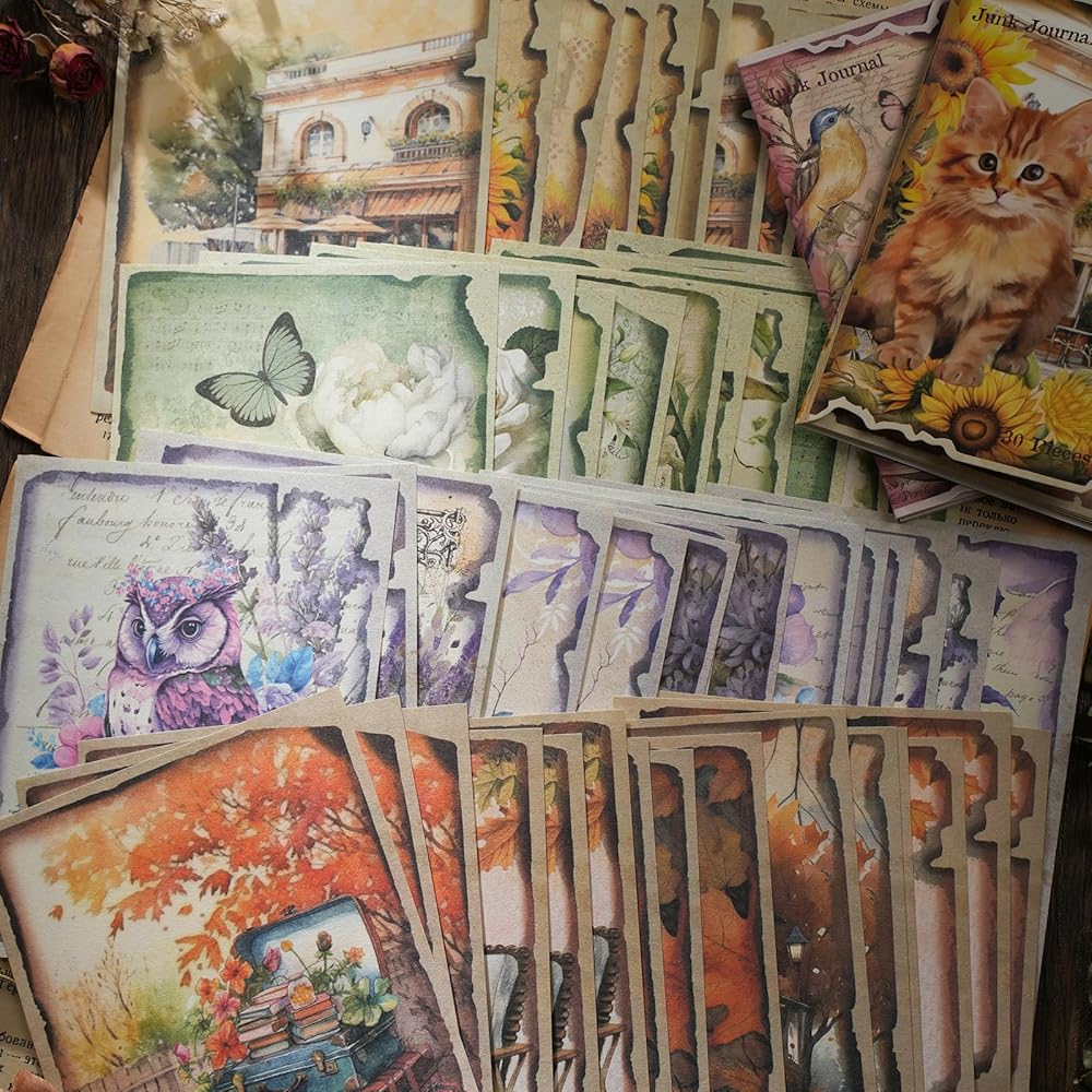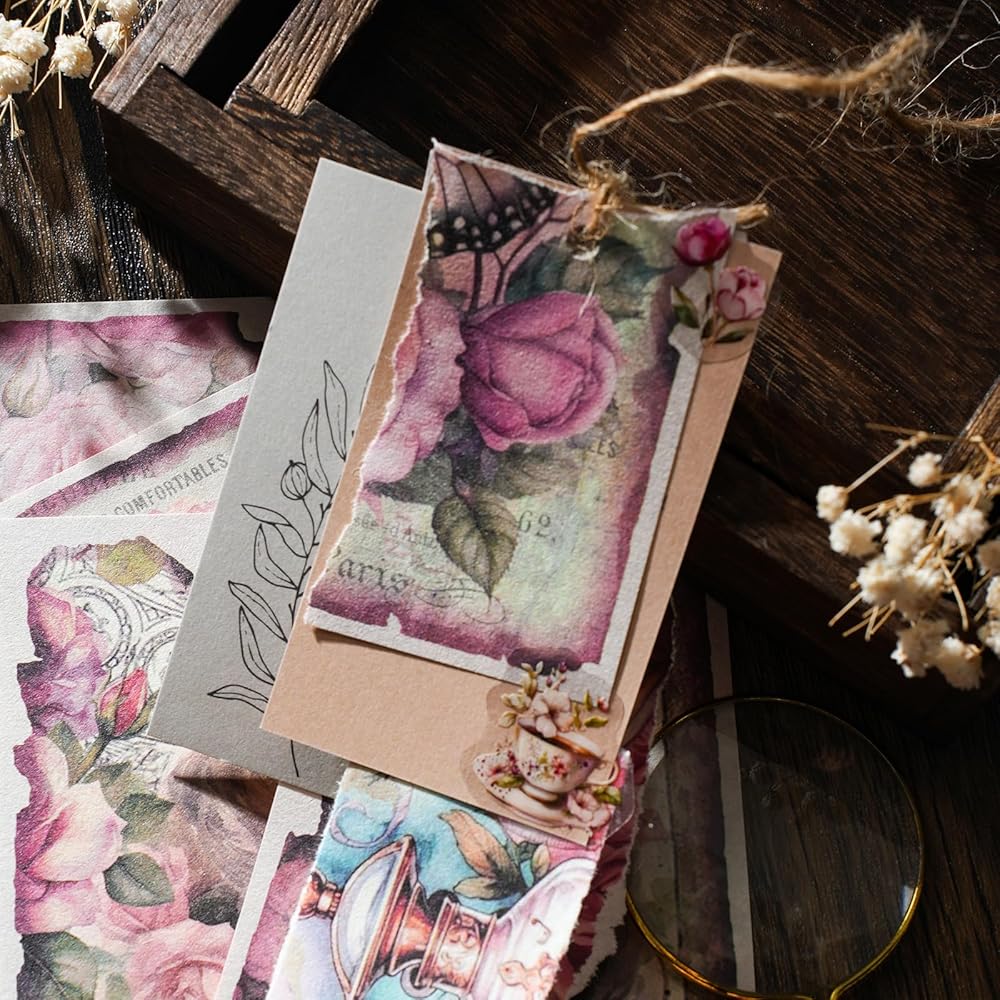 Alideco 180 قطعة من ورق القصاصات العتيق، ورق قصاصات على شكل زهرة عتيقة للفتيات لمستلزمات المجلات، ورق حرفي زخرفي للمجلات غير المرغوب فيها (shizhimanyou)