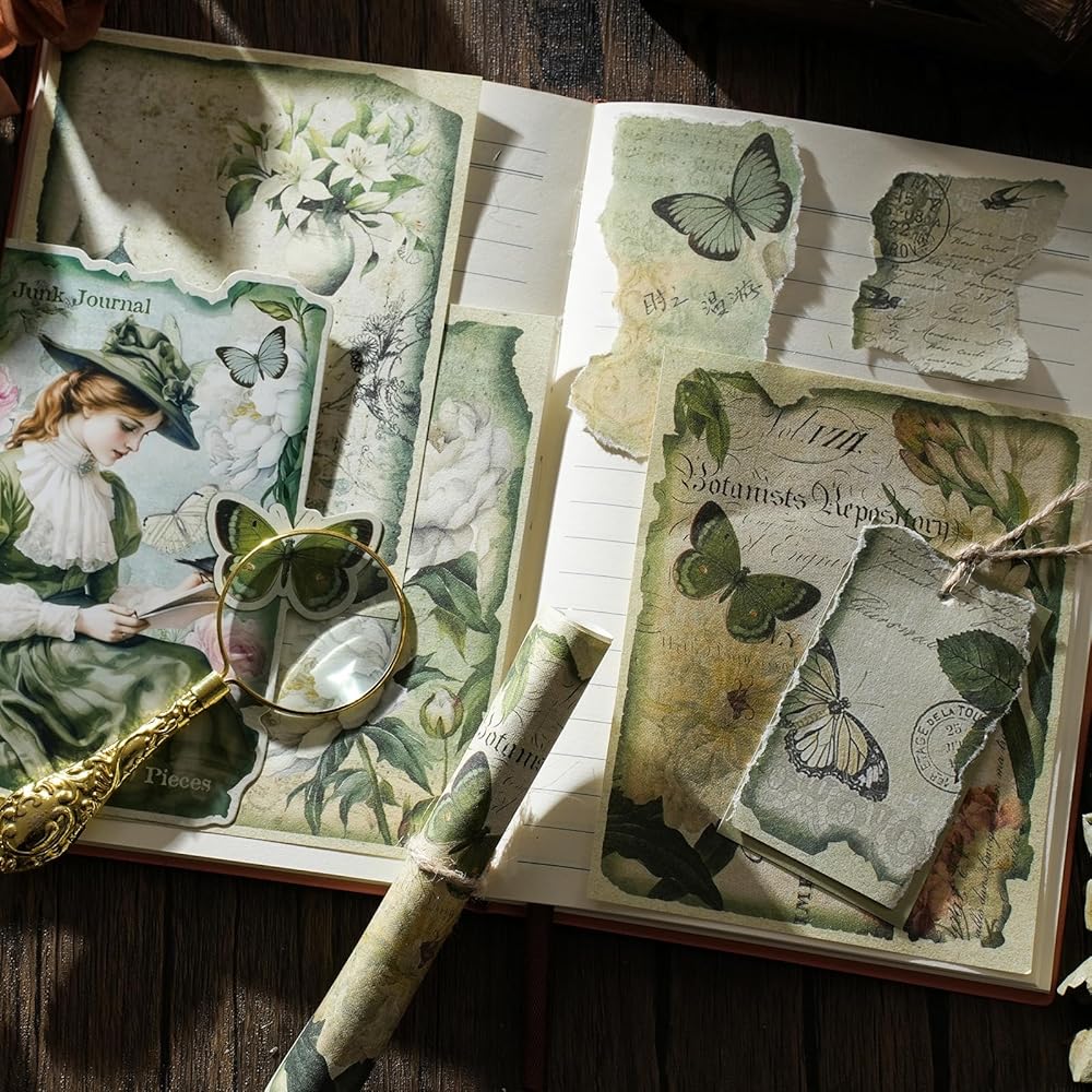 【CLEAR PRINTING】 The Retro collection theme scrapbooking DIY kit features the artistic botany and creature elements, such as mushroom, plant, grass, spice, butterfly, Tickets, maps, antique objects, planets, letters, dried flowers, dried branches, lace, bows,, shell and more. Thanks to the high definition printing technology, all the decal embellishment supplies are in clear and vivid vintage , Durable and stick well on smooth and dry surfaces