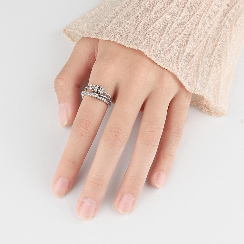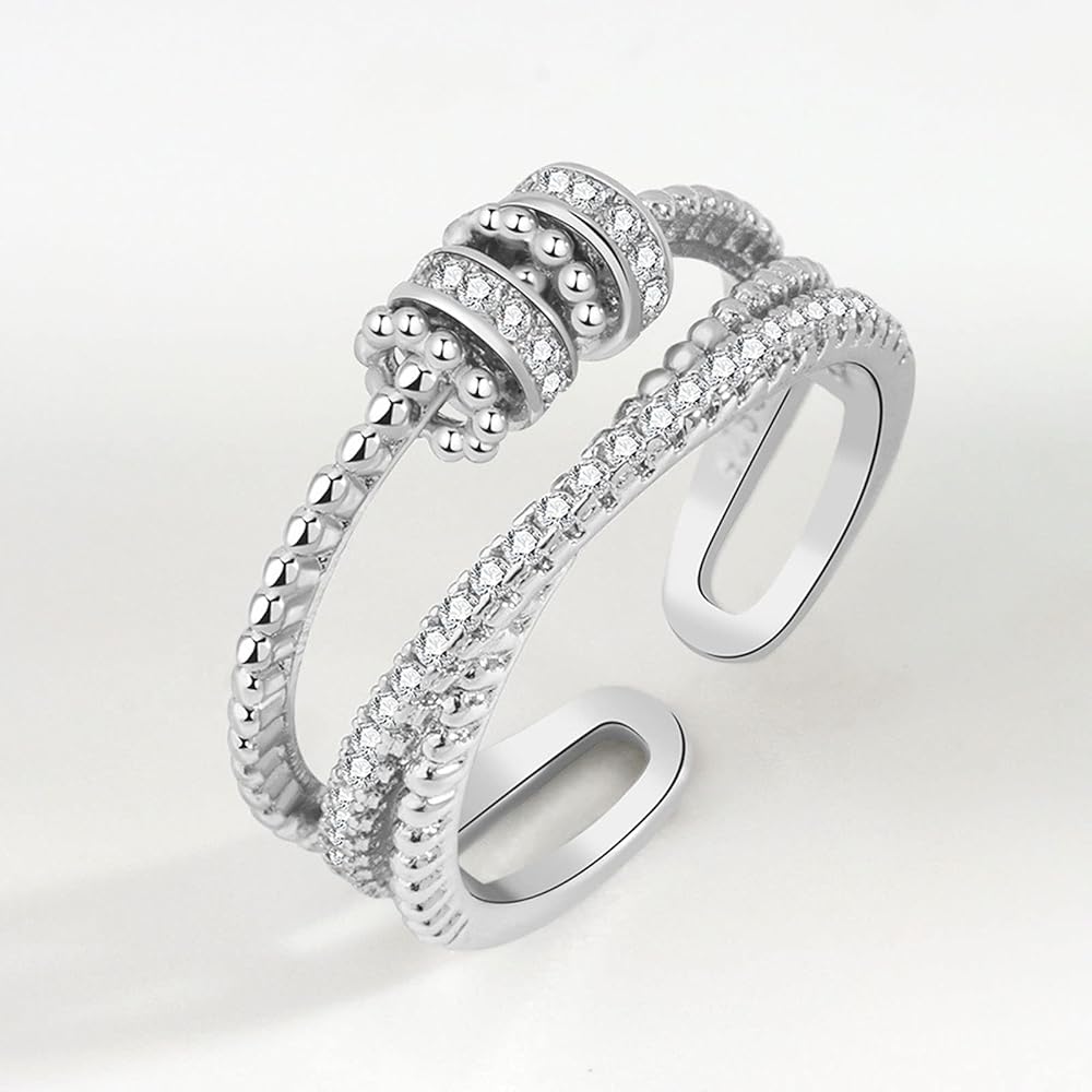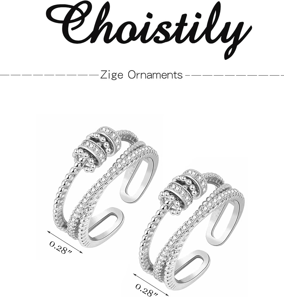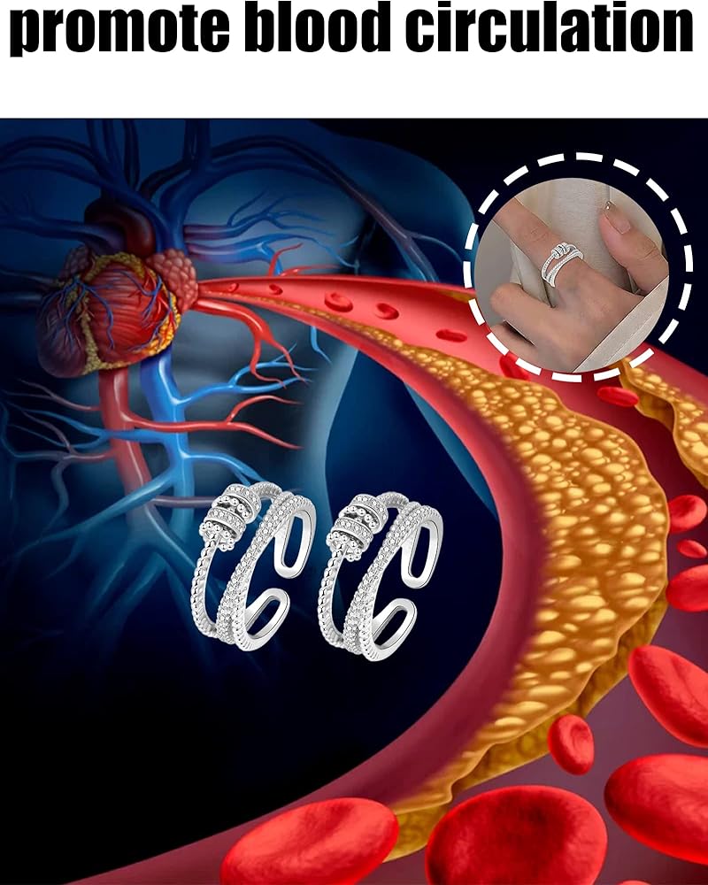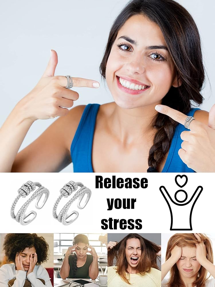2 PCS Lymphatic Ring for Women Lymphatic Drainage Ring Jansio Threanic Triple-Spin Spinner Ring Open Adjustable Vikanda Anxiety Ring