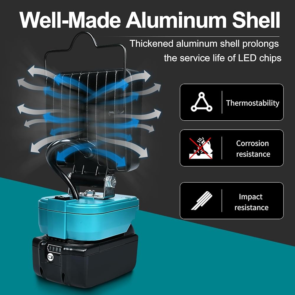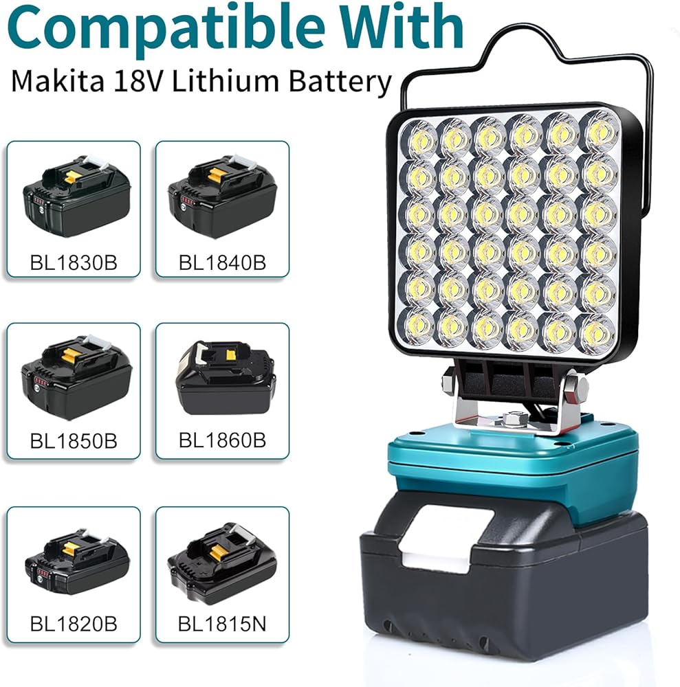 【يعمل بالبطارية】يتوافق هذا المصباح المدمج المحمول تمامًا مع بطاريات ماكيتا 18 فولت، مثل BL1815 وBL1830 وBL1845 وBL1850، خذ بطاريتك واستخدمها في الهواء الطلق بسهولة. ضوء عمل 18 فولت، سهل التركيب، تصميم لاسلكي