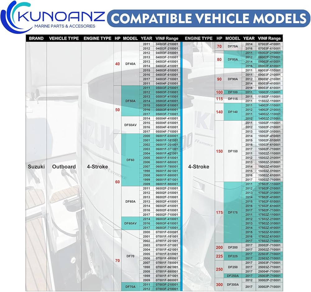 [Adaptation] : Part of the For Suzuki :40-300HP,DF40 DF50 DF60 DF70 DF80 DF90 DF100 DF115 DF140 DF150 DF175 DF200 DF225 DF250 DF300 (1998-2017) ; Johnson :40-225HP,(2004-2005-2006) ,4-Stroke Engine