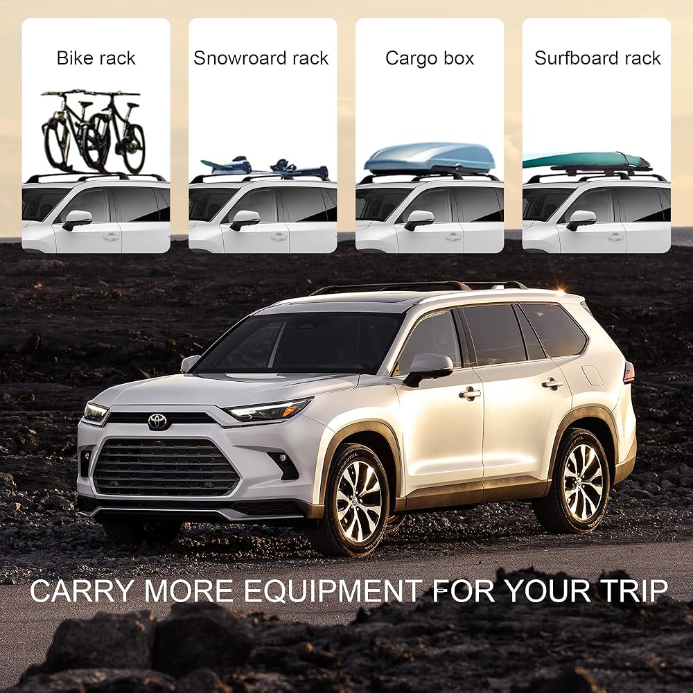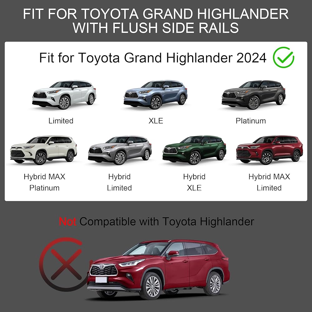 خدمة لا داعي للقلق: نقدم ضمانًا لمدة 180 يومًا لرف السقف ذو الدفع الرباعي هذا لسيارة جراند هايلاندر مع قضبان جانبية فلوش، إذا كان لديك أي قلق أو أسئلة، فلا تتردد في الاتصال بنا. سوف نخدمك. (ملاحظة: غير متوافق مع سيارة تويوتا هايلاندر 2024. يرجى التحقق من سنة سيارتك وتصنيعها وطرازها قبل الشراء.)