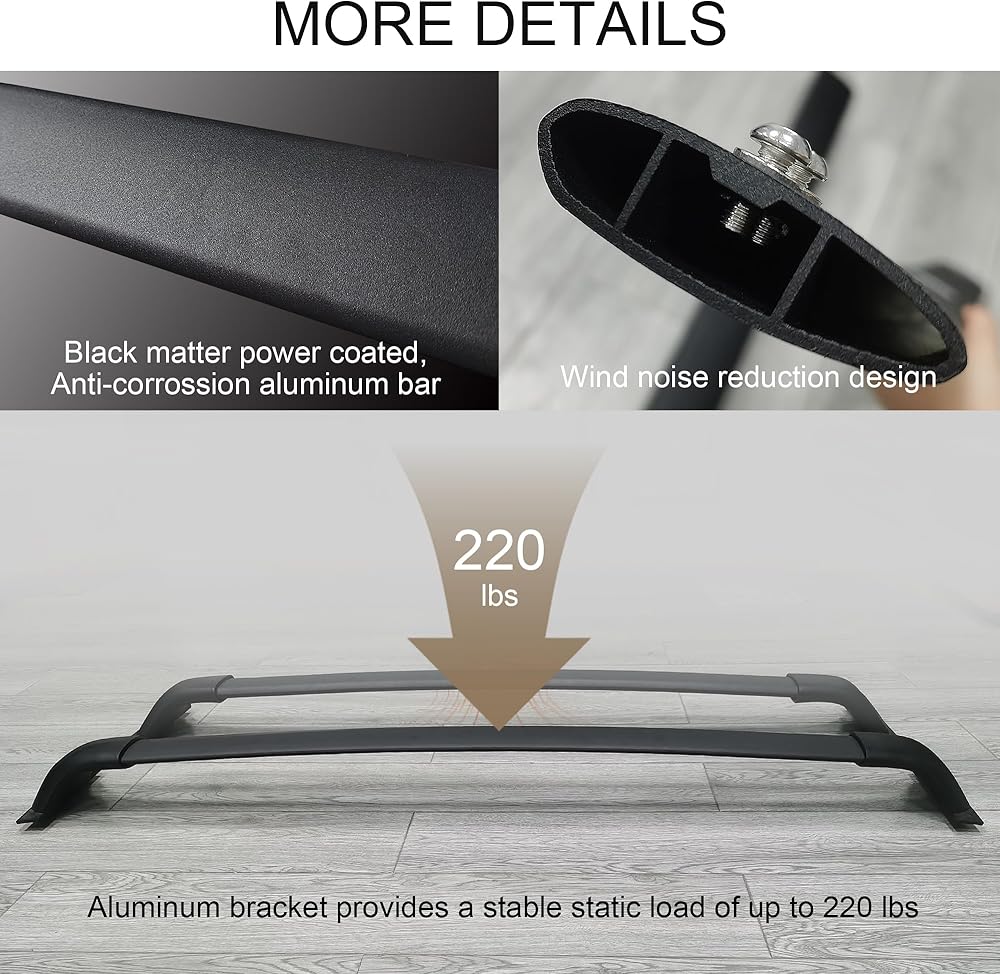 مواد متفوقة: قضبان السقف المتقاطعة لجراند هايلاندر مصنوعة من ألومنيوم مطور مقاوم للصدأ وهو شديد الصلابة ويقاوم الاعوجاج ويدوم لفترة أطول ويتحمل ما يصل إلى 220 رطلاً. بالمقارنة مع الآخرين، قضبان الألومنيوم السميكة 2-3 مم مع 2 إضافيين يمكن أن تتحمل القضبان الموجودة في المنتصف وزنًا أكبر وأكثر.