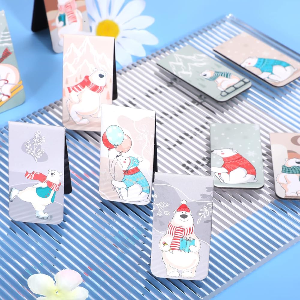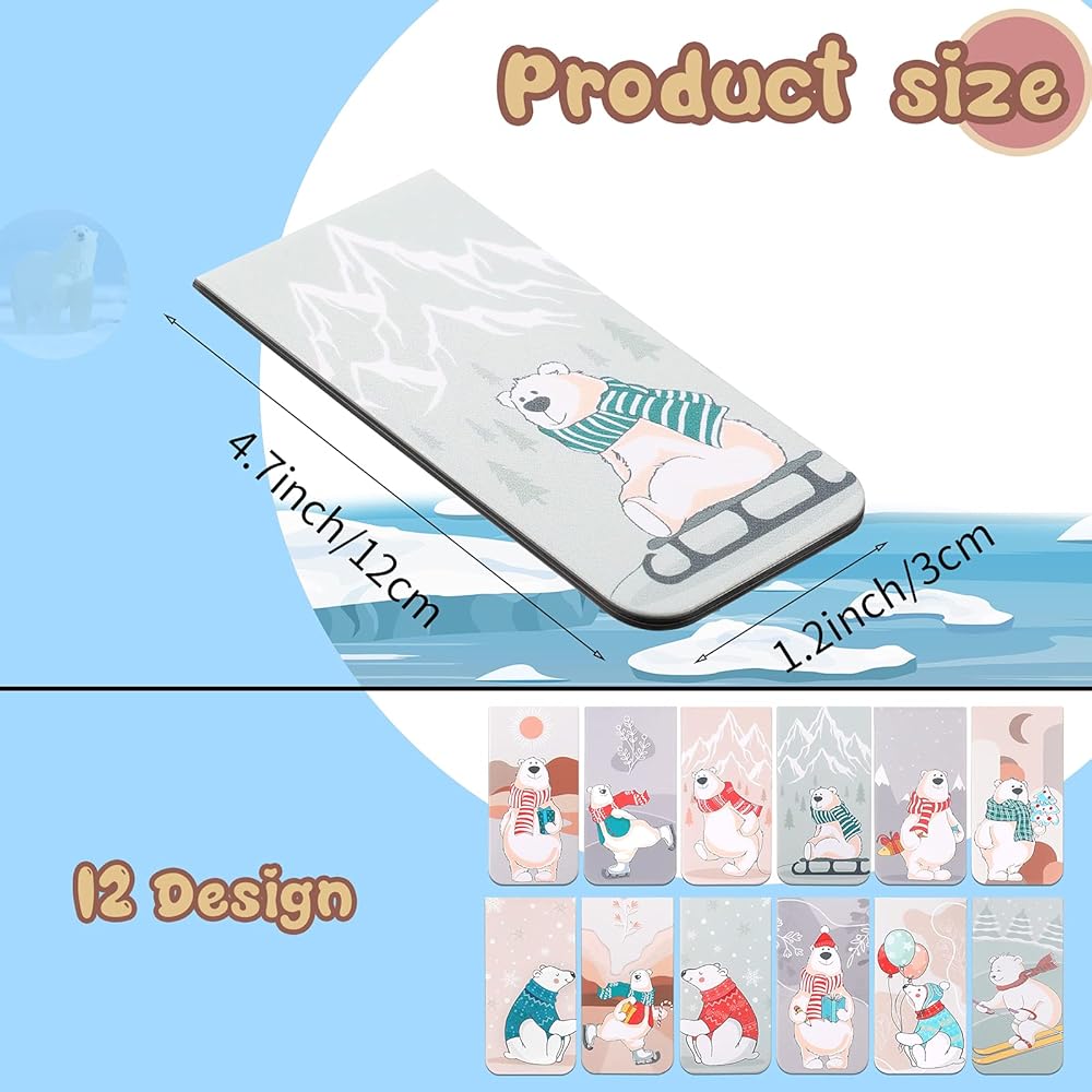 Adopting 12 cute polar bears with different actions, these Christmas magnetic bookmarks will increase reading interests.