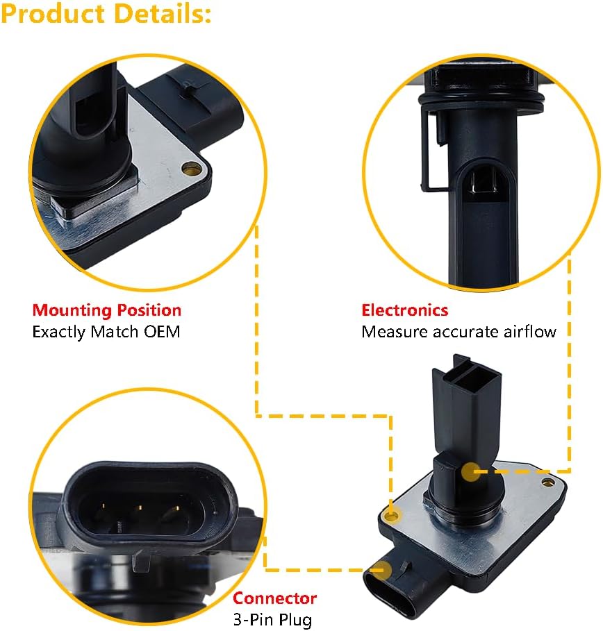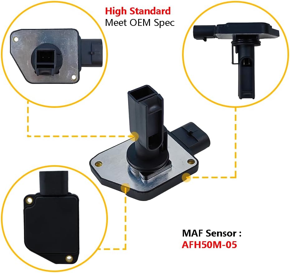 Note: Please clean out the air box and replace the air filter before installing this Mass Air Flow Sensor. | This MAF sensor uses high-quality material and new technology to meet OEM specifications. | Fully inspected to ensure the ECU receives accurate airflow readings under hard engine conditions.