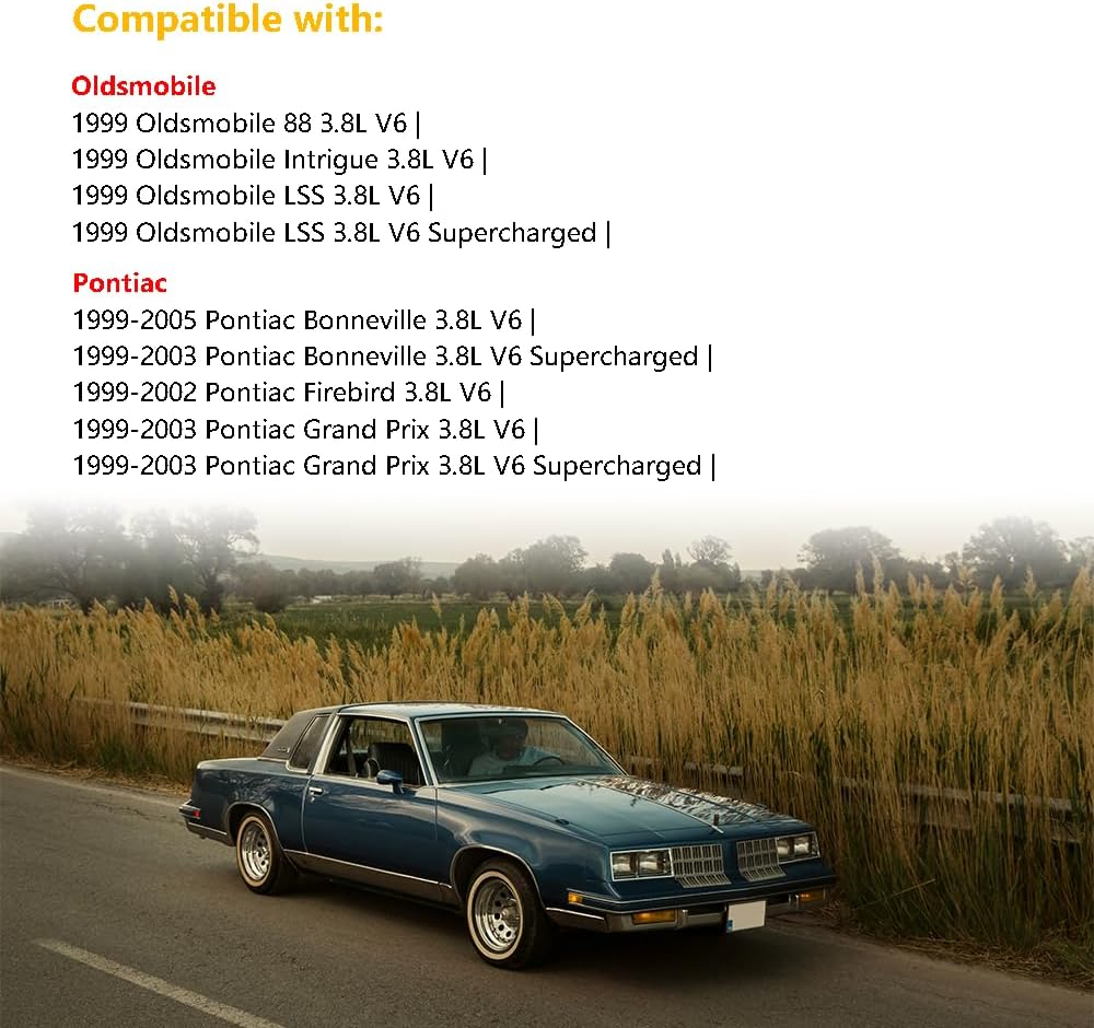 Compatible with: Pontiac | 1999-2005 Pontiac Bonneville 3.8L V6 | 1999-2003 Pontiac Bonneville 3.8L V6 Supercharged | 1999-2002 Pontiac Firebird 3.8L V6 | 1999-2003 Pontiac Grand Prix 3.8L V6 | 1999-2003 Pontiac Grand Prix 3.8L V6 Supercharged |