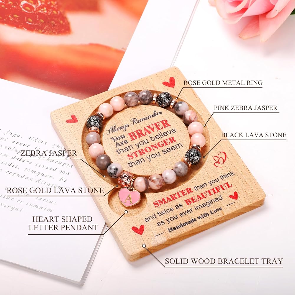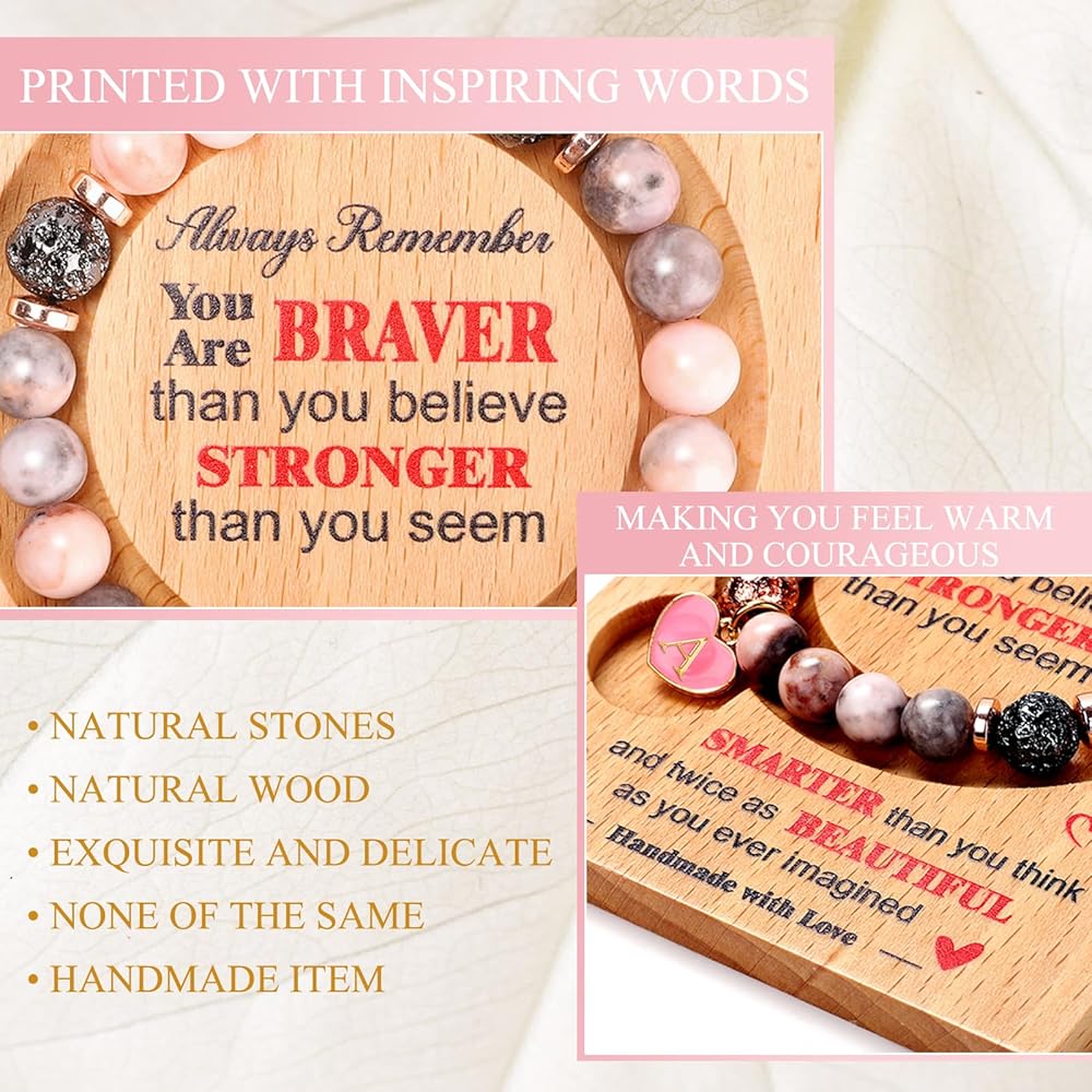 Celebrate the special women in your life with our Initial Bracelet, a perfect birthday gift that combines elegance and meaningful sentiment. This bracelet features a unique wooden tray packaging, setting it apart from the rest. The wooden tray is not only a beautiful presentation but also comes engraved with an inspiring message: "Always remember you are braver than you believe, stronger than you seem, smarter than you think and twice as beautiful as you ever imagined."