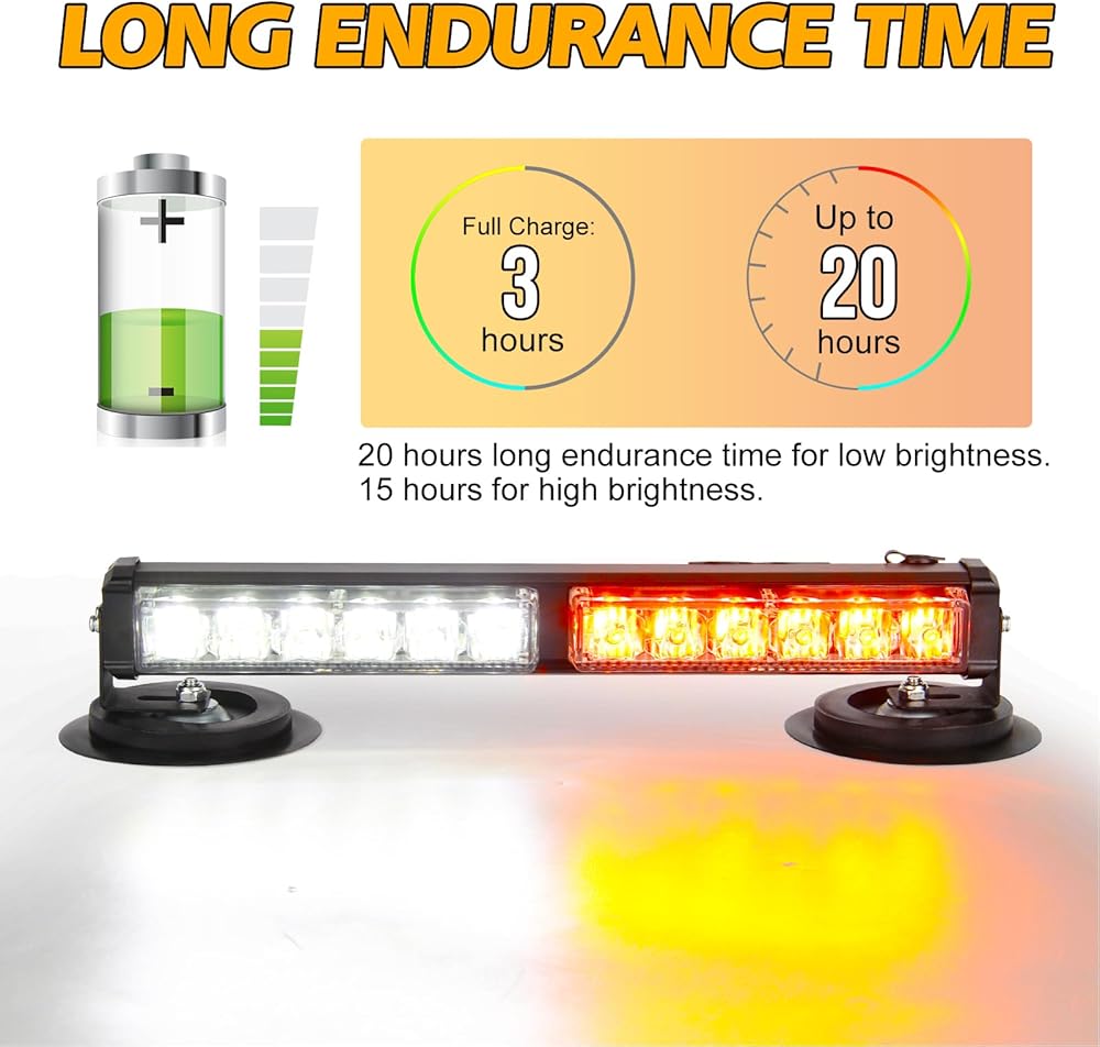 【رقاقة LED مدمجة 12 قطعة】 تم بناء شريط الإضاءة القوية LED في 12 قطعة LED مع رؤية عالية في ضوء النهار أو منتصف الليل أو المطر أو أيام الضباب. تحسين أمن السائق وتجنب الحوادث.