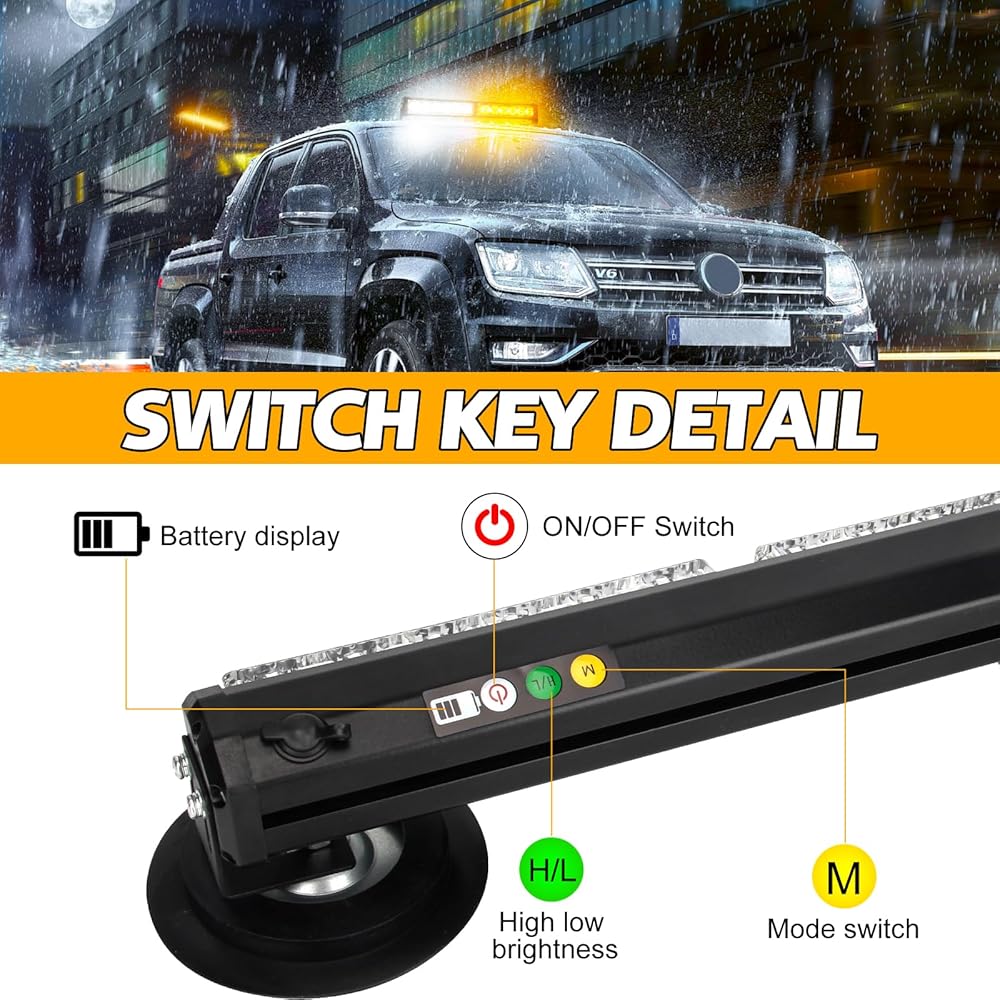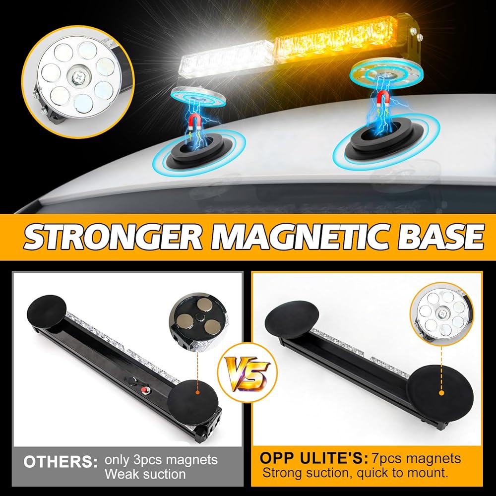 【أضواء قوية بقاعدة مغناطيسية قوية】 يأتي ضوء ستروب LED مع 14 مغناطيسًا قويًا شديد التحمل، أكثر استقرارًا من المغناطيسات الستة الأخرى. سريع جدًا في التركيب دون الإضرار بسقف مركباتك، بالإضافة إلى إضافة قوة عند التركيب. يرجى ملاحظة: يرجى التأكد من أن سيارتك مغناطيسية، ولا يمكن أن تعمل مع المركبات غير المغناطيسية.