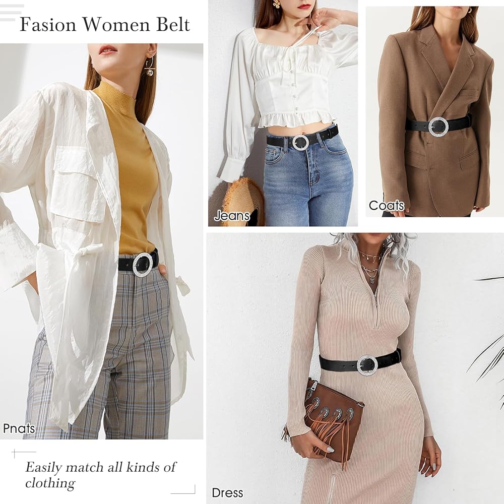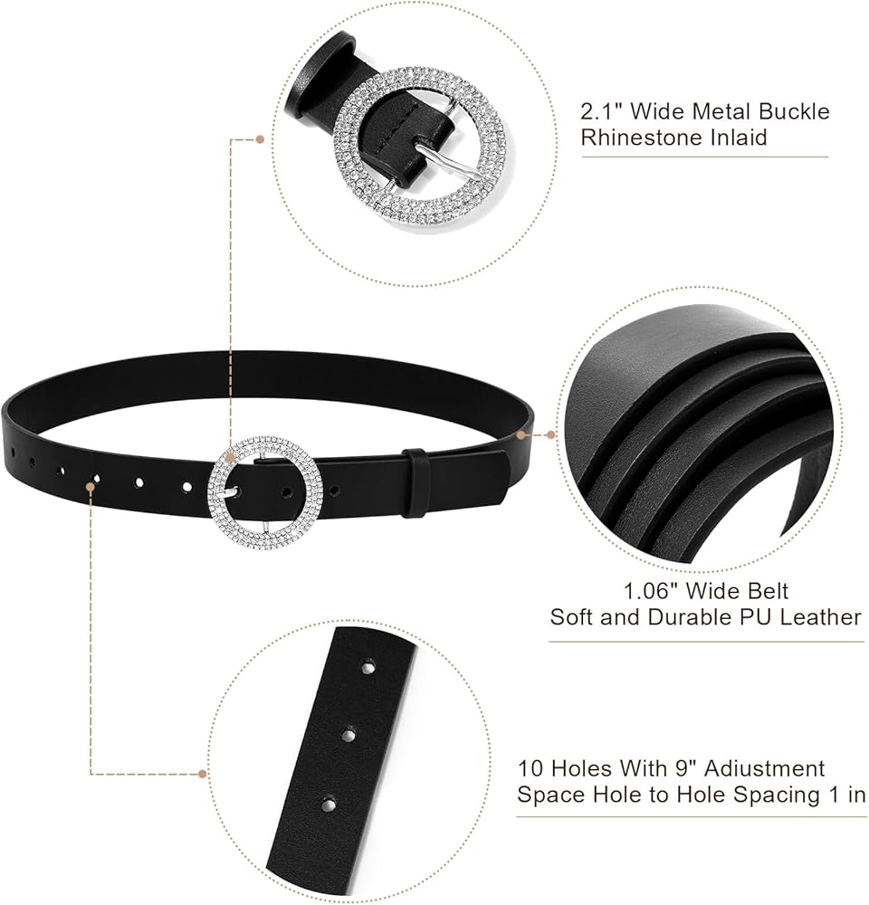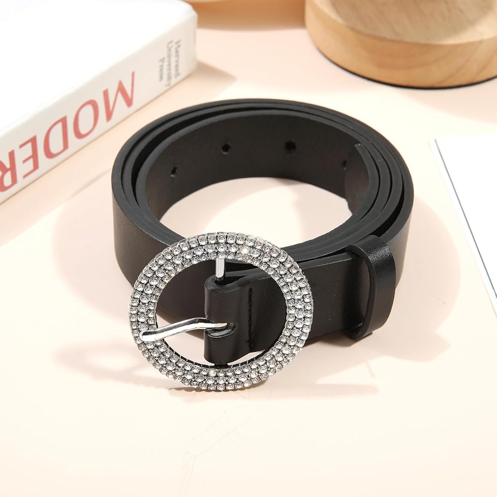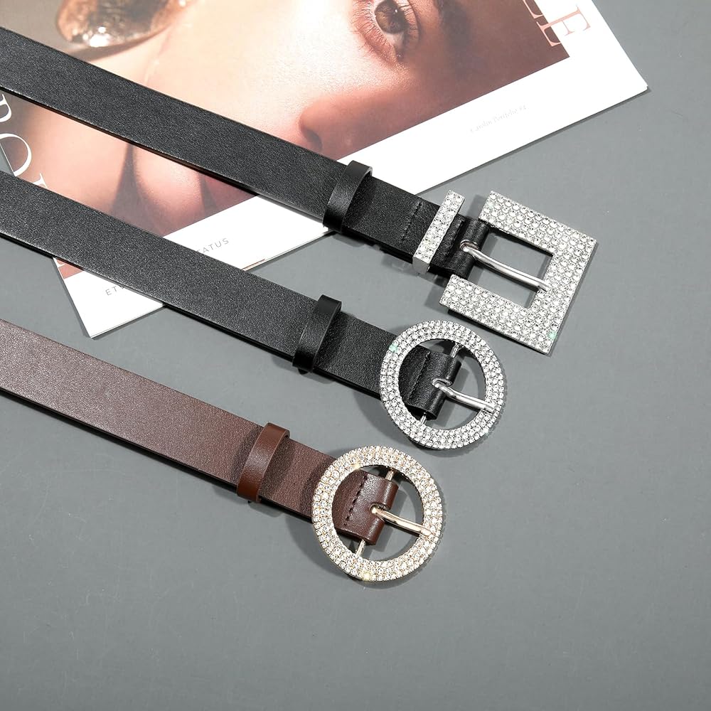 AWAYTR womens belts for jeans Rhinestone Buckle belt for Woman