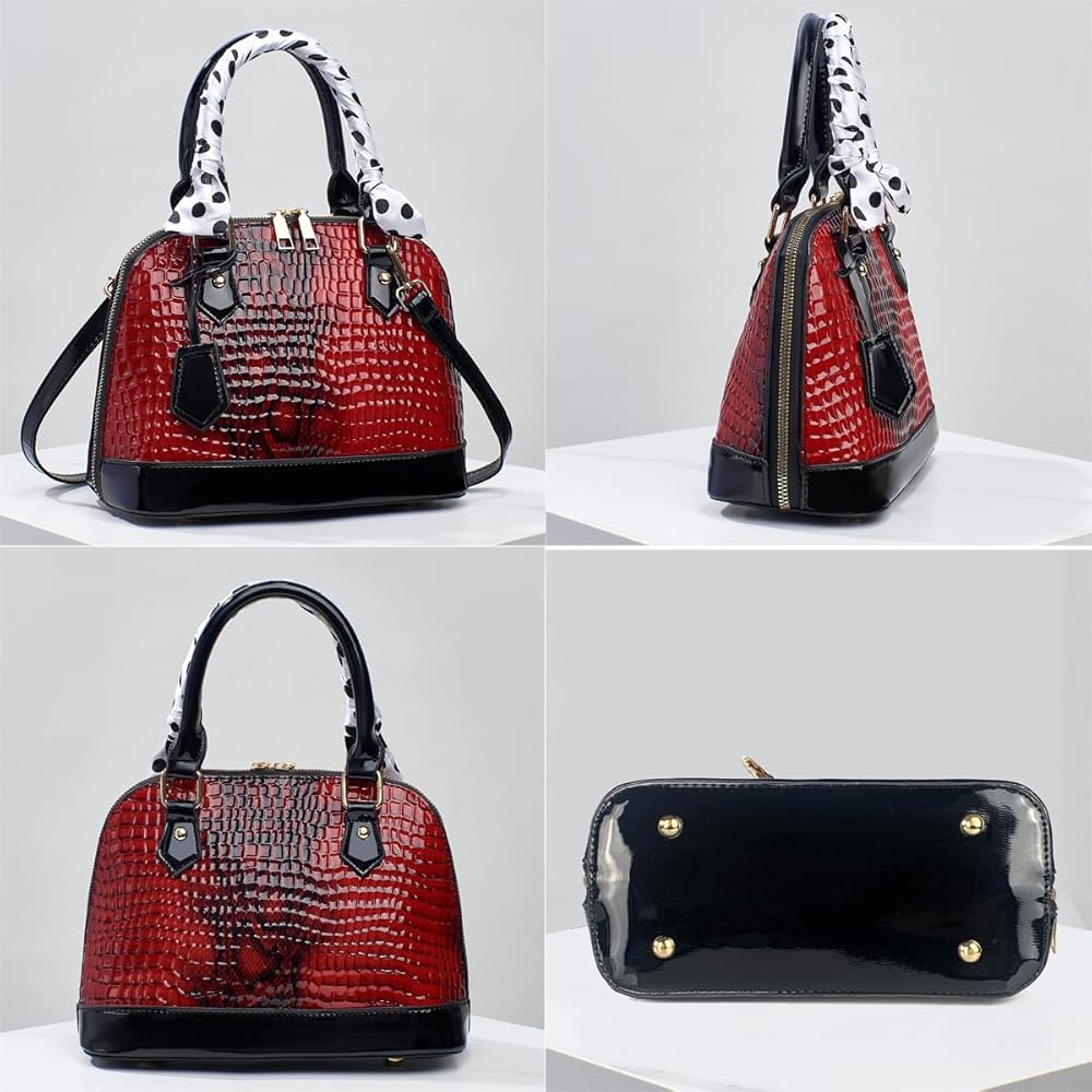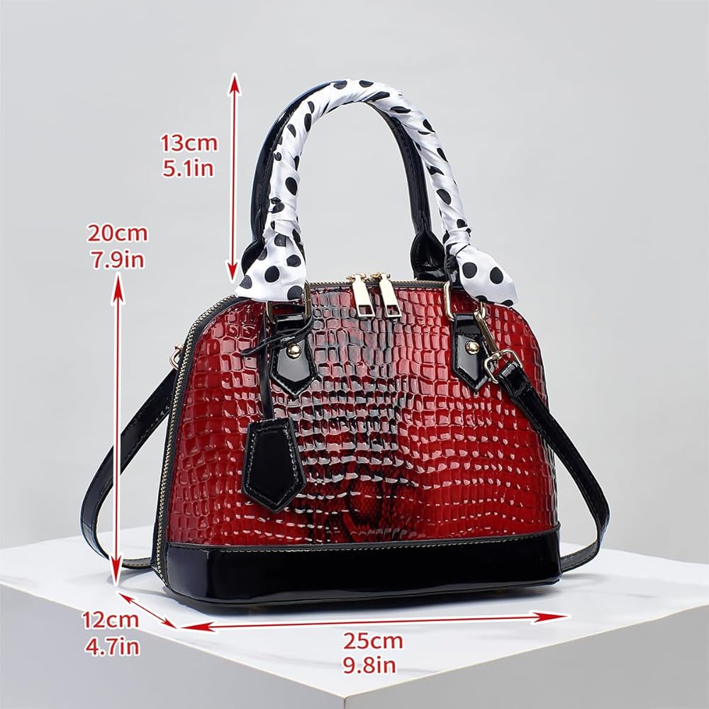 Elevate your style with the Nevenka Premium Glossy Alligator Leather Crocodile Embossed Satchel Handbag. Made from premium glossy alligator leather, this handbag exudes elegance and sophistication. The crocodile embossed pattern adds a unique touch, making it a standout accessory. Featuring a large open zipper, this handbag offers easy access to your belongings. The spacious interior is perfect for fitting your Everyday items, , this handbag has ample space to carry everything you need. Upgrade your accessory collection with the Nevenka Premium Glossy Alligator Leather Crocodile Embossed Satchel Handbag. Experience the perfect blend of functionality, style, and luxury. Order now and add a touch of glamour to your ensemble.