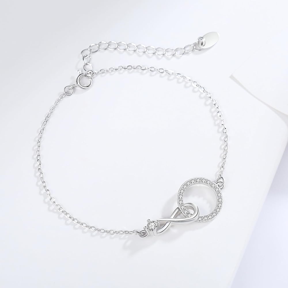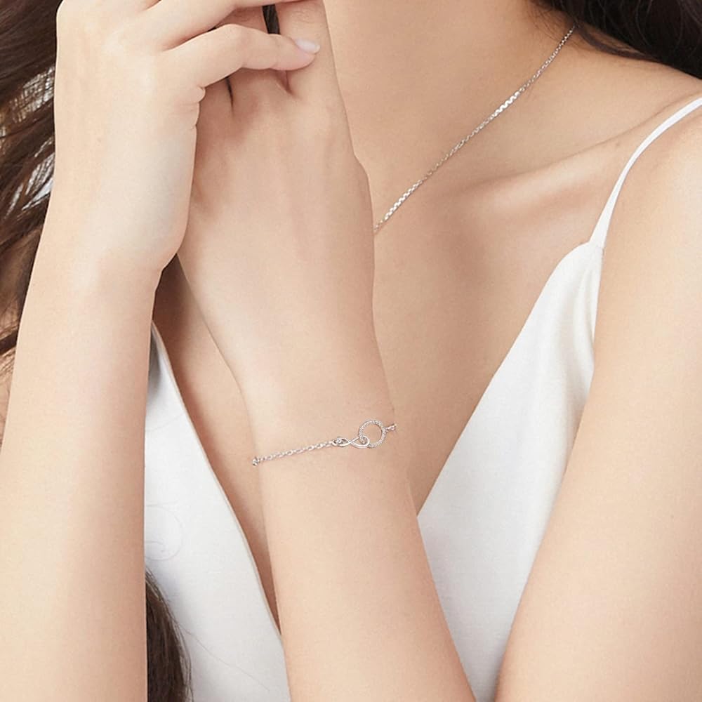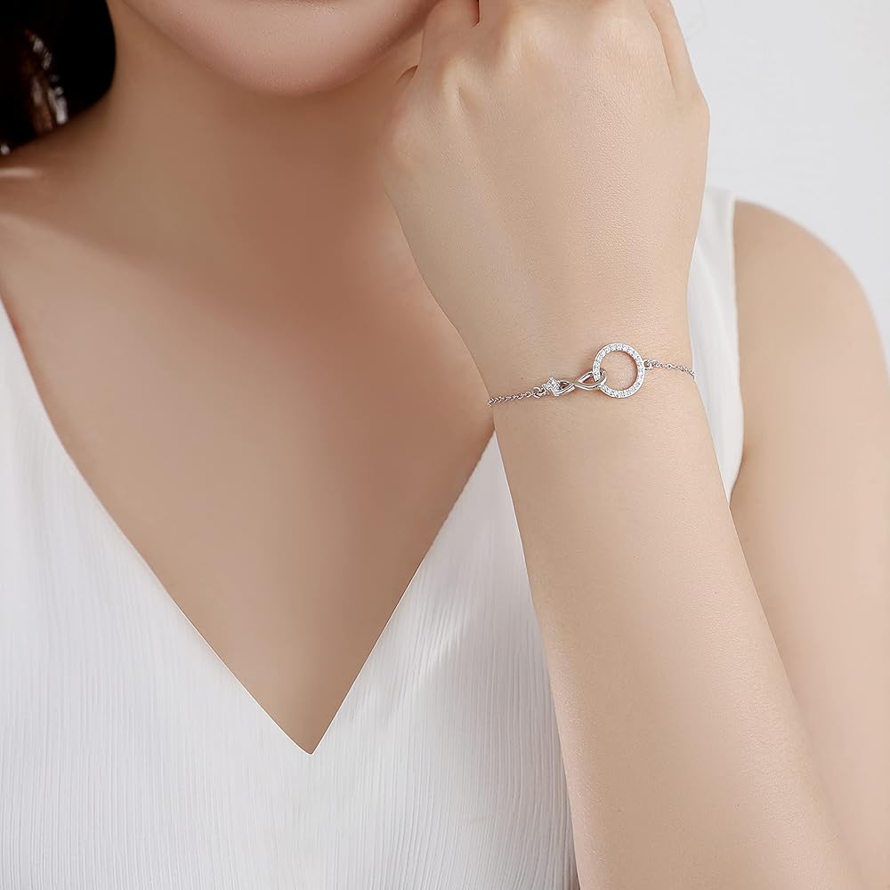 سوار Auntie Niece Infinity: مصنوع من رمز اللانهاية الرقيق ودائرة زركونيا مكعبة متلألئة. إنه يمثل الحب والاتصال غير القابل للكسر بين العمة وابنة أختها. بغض النظر عن المكان الذي تأخذك فيه الحياة أو التحديات التي تواجهها، فإن هذا السوار بمثابة تذكير بأنك ستحظى ببعضكما البعض دائمًا.