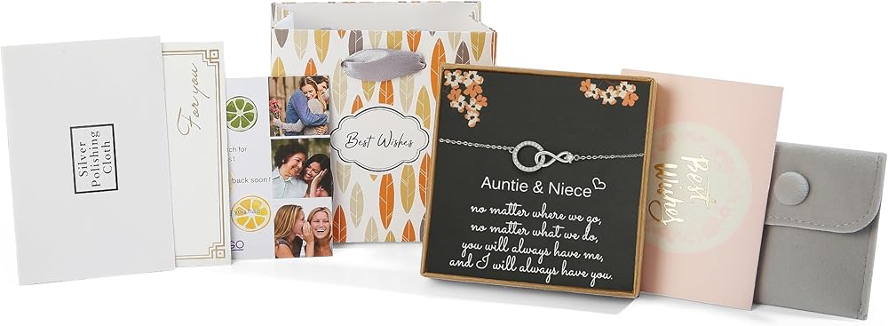 مجموعة الهدايا: تتضمن سوار من الفضة الإسترلينية عيار 925، وصندوق هدايا، وقطعة قماش لتلميع الفضة، وبطاقة تهنئة فارغة، وحقيبة هدايا، ومظروف، وحقيبة ناعمة. تم وضع السوار بعناية على بطاقة ذات طابع ابنة العمة. لا يستغرق الأمر سوى بضع دقائق لإنهاء بطاقة الرسالة وتجميع الهدية، مما يجعلها ذات معنى أكبر.
