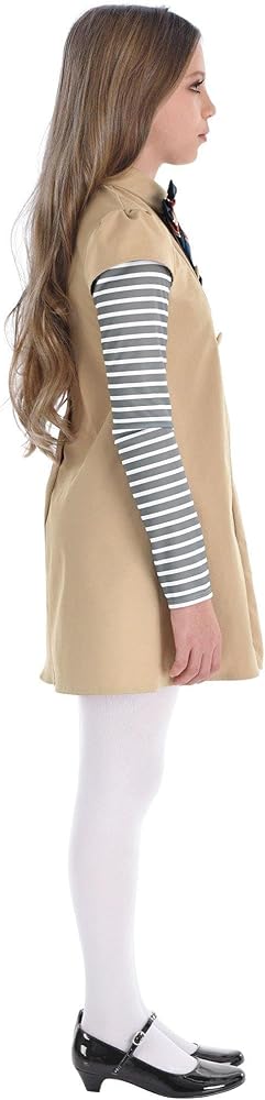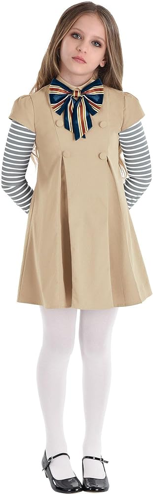 Detailed Design: The dress features an attached bow, while the tights complete the eerie look. This costume is perfect for trick-or-treating or any spooky festivity.
