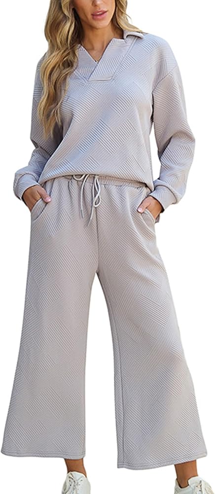 طقم رياضي مكون من قطعتين: زي أنيق ومريح مصمم للمرأة العصرية، يتميز هذا الطقم بسويت شيرت مريح فضفاض مع بنطال واسع الساق