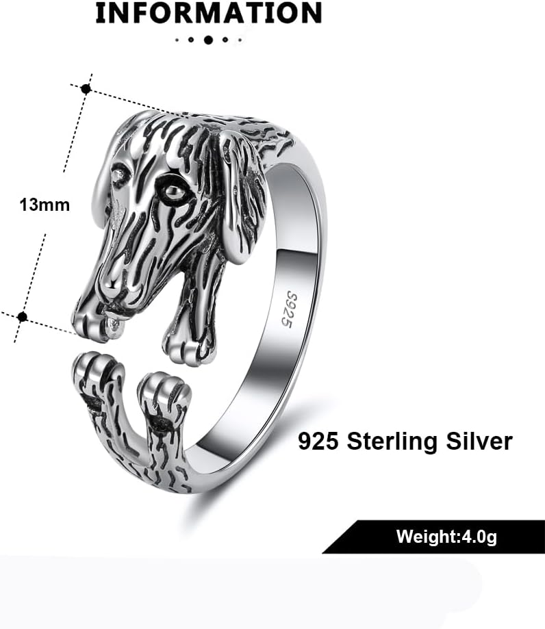 تم تصميم الحلقة بعرض 7 مم مع الاهتمام الشديد بالتفاصيل، وتتميز بزخارف Dachshund المصنوعة بشكل معقد، والتي تلفت الأنظار وتثير المحادثات أينما ذهبت.