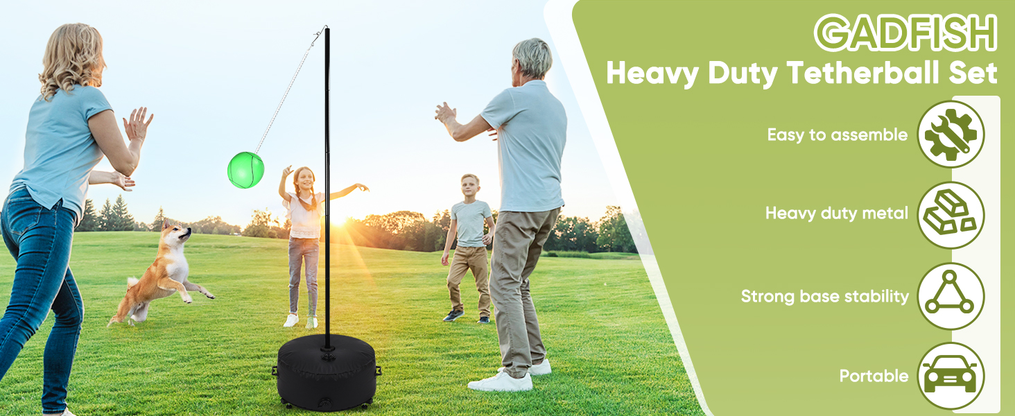 مجموعة كرة حبل شديدة التحمل من GADFISH مع كرة وحبل، أعمدة كرة حبل بارتفاع قابل للتعديل، قاعدة حامل مطورة، مجموعة كرة حبل محمولة للأنشطة العائلية الممتعة للفناء الخلفي الداخلي والخارجي، الحديقة، الشاطئ