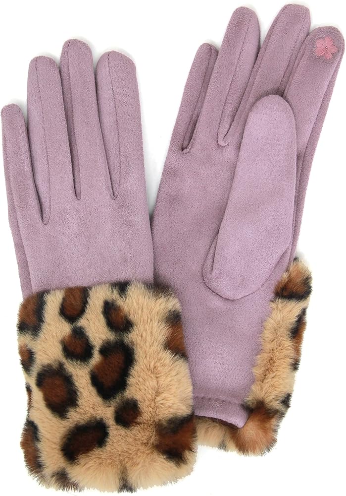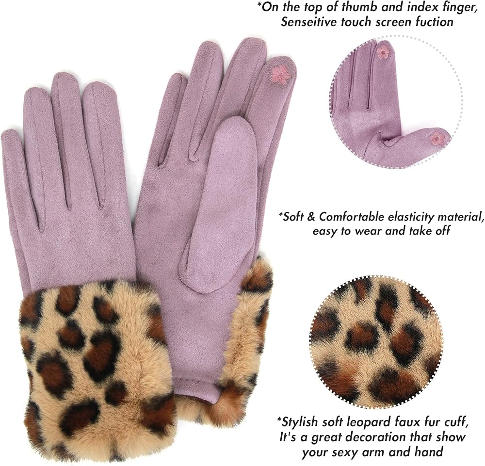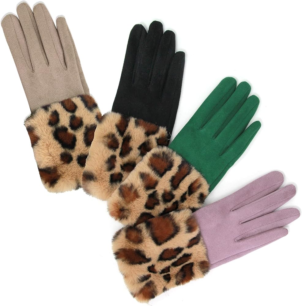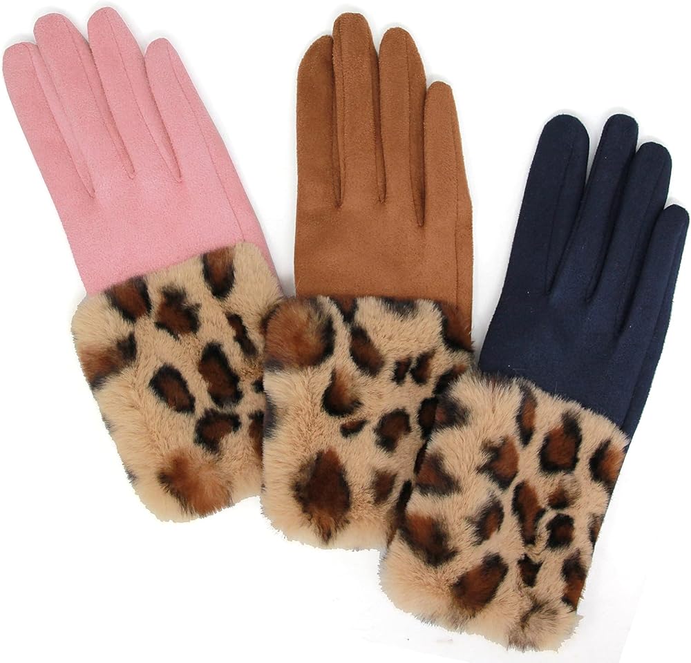 قفازات Me Plus Fashion النسائية الشتوية الأنيقة بطباعة جلد الفهد الصناعي التي تعمل باللمس (أساور من الفرو الصناعي الفهد - Mave)، مقاس واحد (للنساء مقاس XS / S / M)