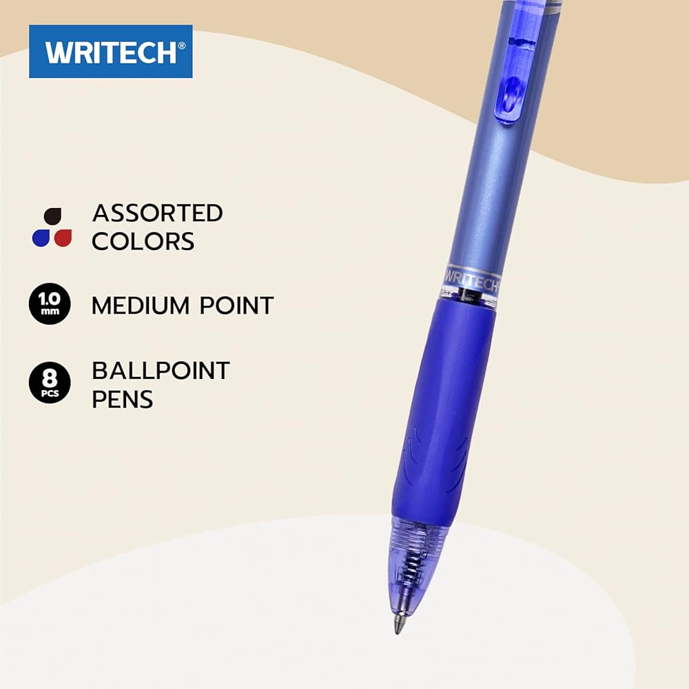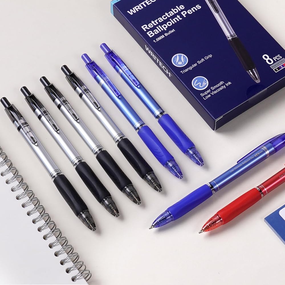 قلم حبر جاف WRITECH نقطة متوسطة: 1.0 مم قابل للسحب أسود وأزرق وأحمر لون الحبر 8 قيراط للكتابة الناعمة منخفضة اللزوجة حبر جاف