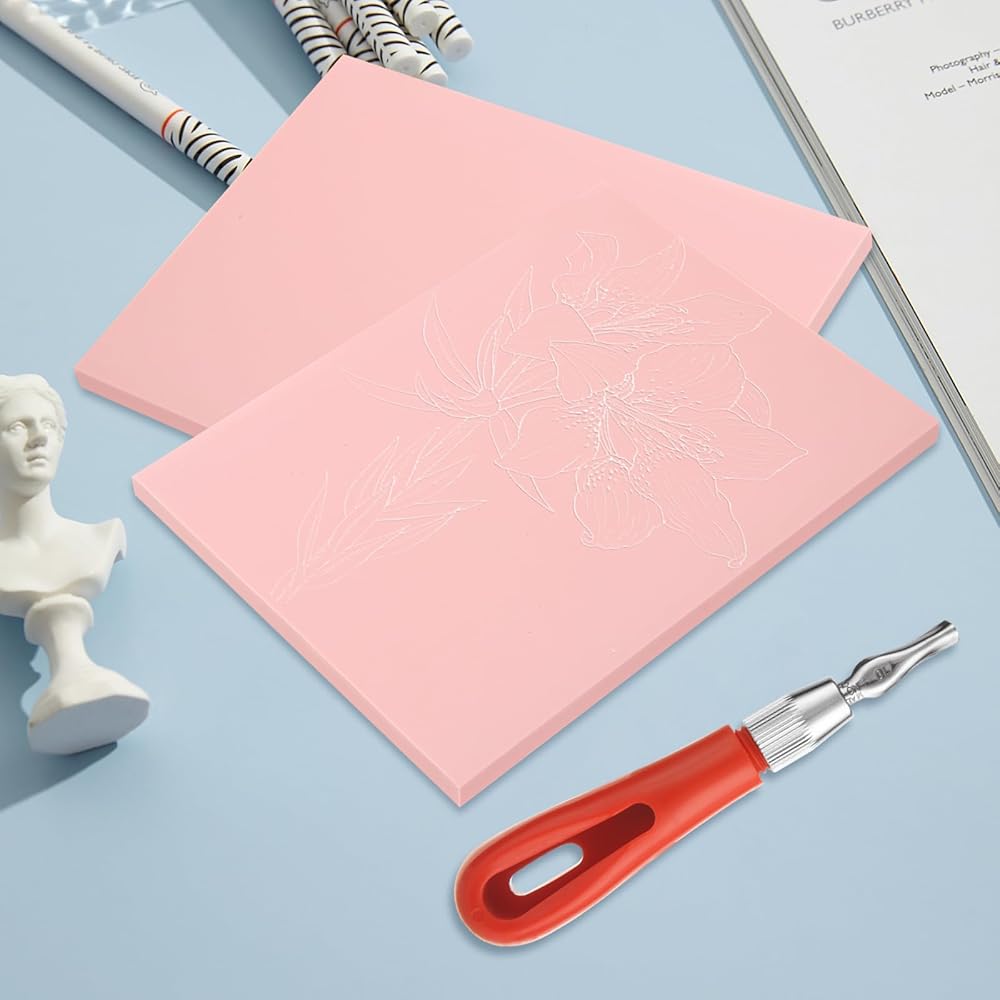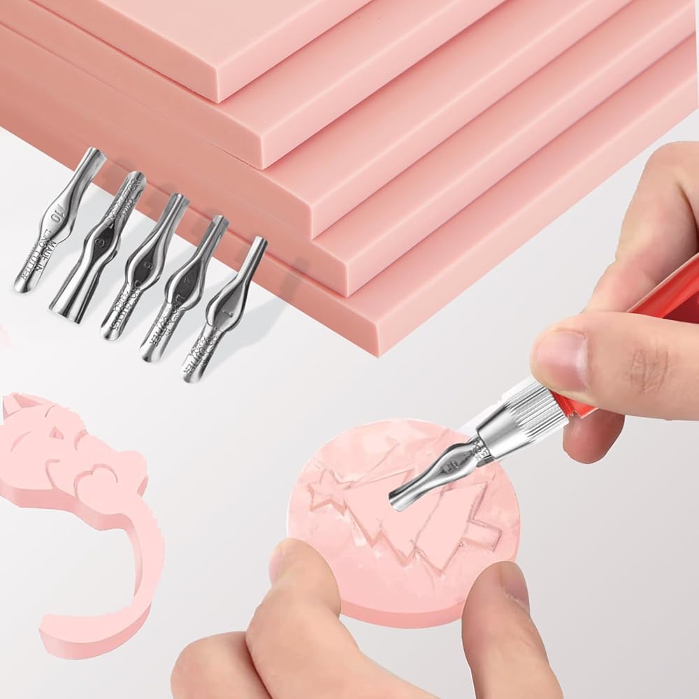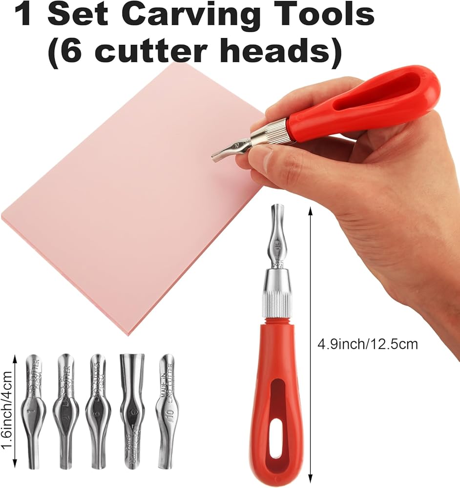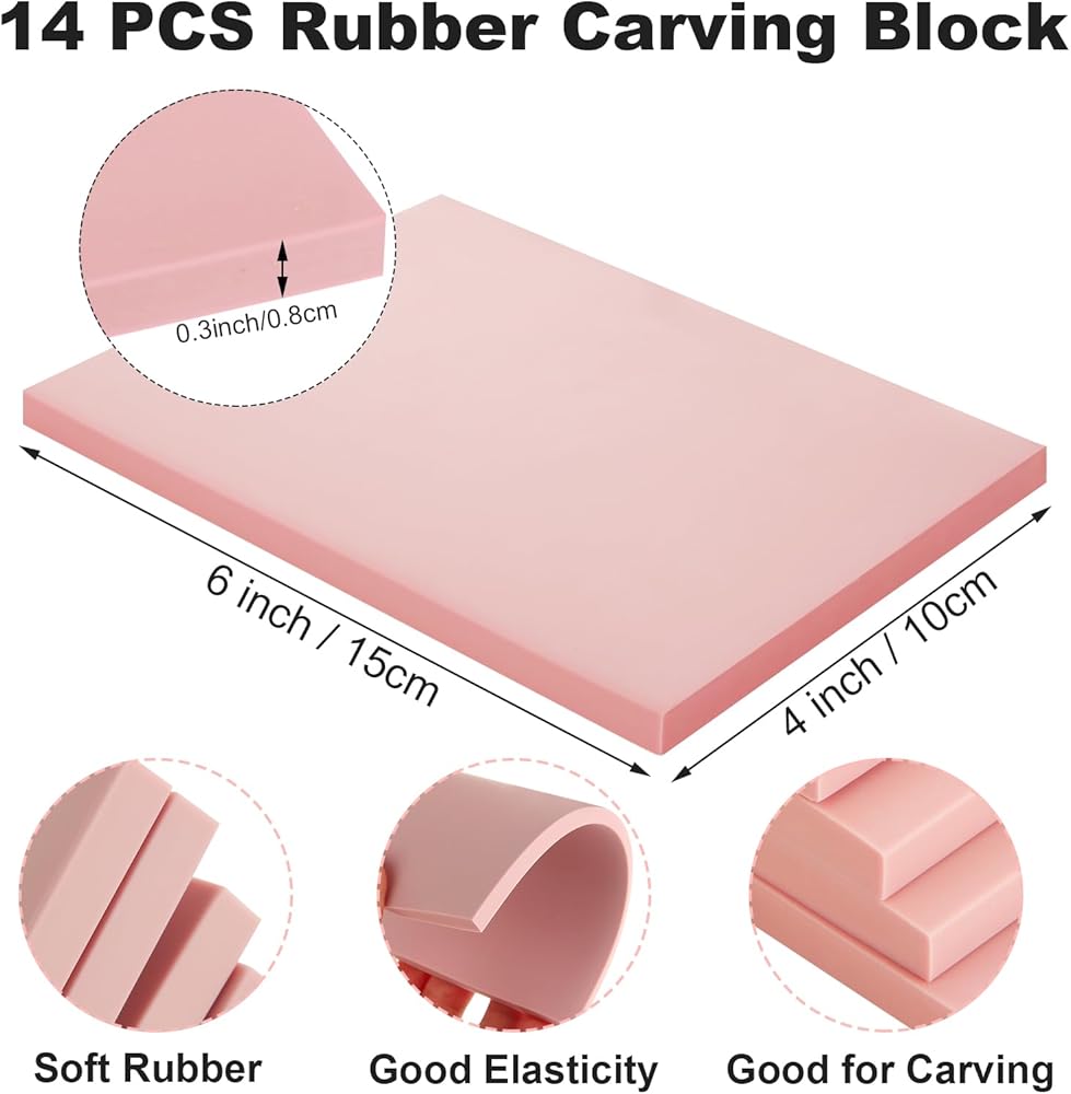 ➤ 14 pink rubber blocks, 1 set carving tool(6 carving knives).