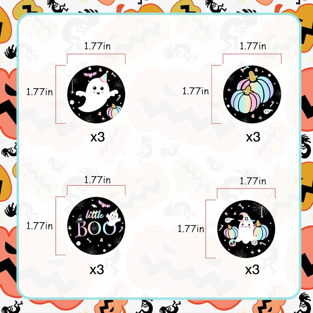 Halloween Little Boo Baby Shower Decors Cupcake Toppers: The whole package includes 36 pack ghost cupcake toppers total with 4 different styles, each style includes 3 pieces. There are various printed Halloween themed elements patterns, such as ghost, pumpkin, bat, and candy.