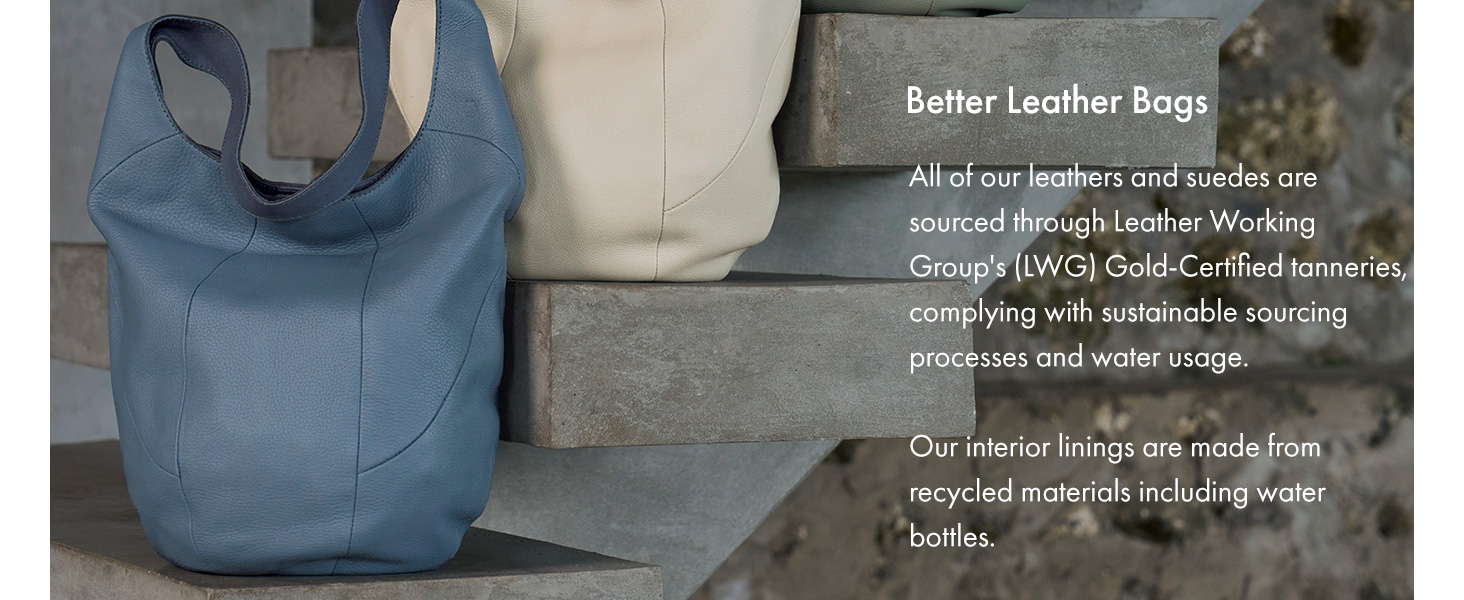 PREMIUM ARTISANAL LEATHER: Bag exterior is leather sourced from a gold-rated certified tannery that complies with environmental sourcing processes & sustainable water usage. Bag interior is PETA-approved & Vegan Certified Repreve Lining