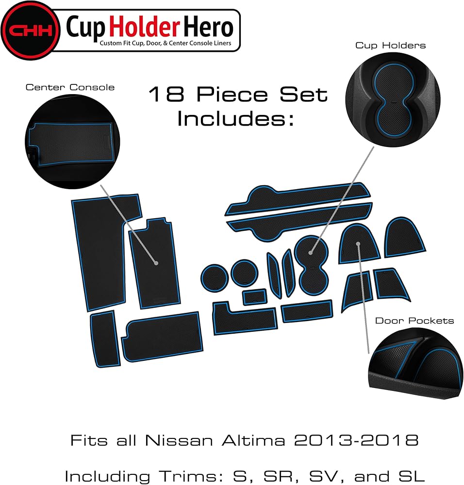 ✅أفضل الهدايا للرجال الذين لديهم كل شيء - تعتبر الإكسسوارات الداخلية للسيارة CupHolderHero أفكار هدايا رائعة للرجال والنساء الذين يستمتعون بإحساس السيارة النظيفة ويحبون المظهر المخصص المفصل. يدعم تعديلات نيسان ألتيما. لا يمكنك أن تخطئ! مع خيارات الألوان المتنوعة لدينا، نحن متأكدون من أننا سنحصل على المظهر المناسب ليناسب سجادات الأرضية وأغطية المقاعد الخاصة بك. امنح هدية إكسسوارات البطانة المخصصة المناسبة لنيسان ألتيماس