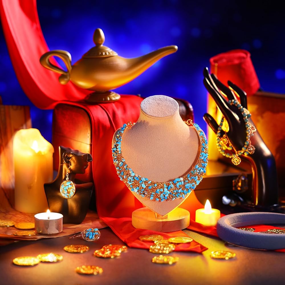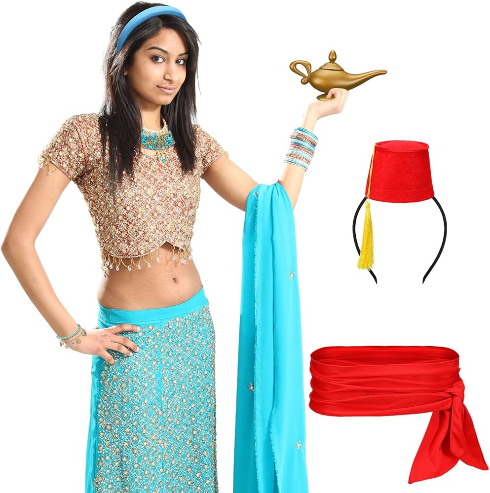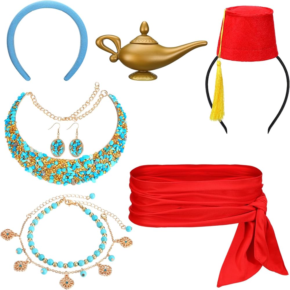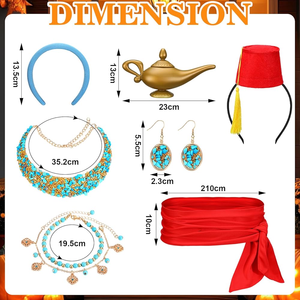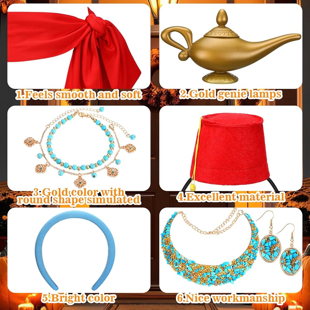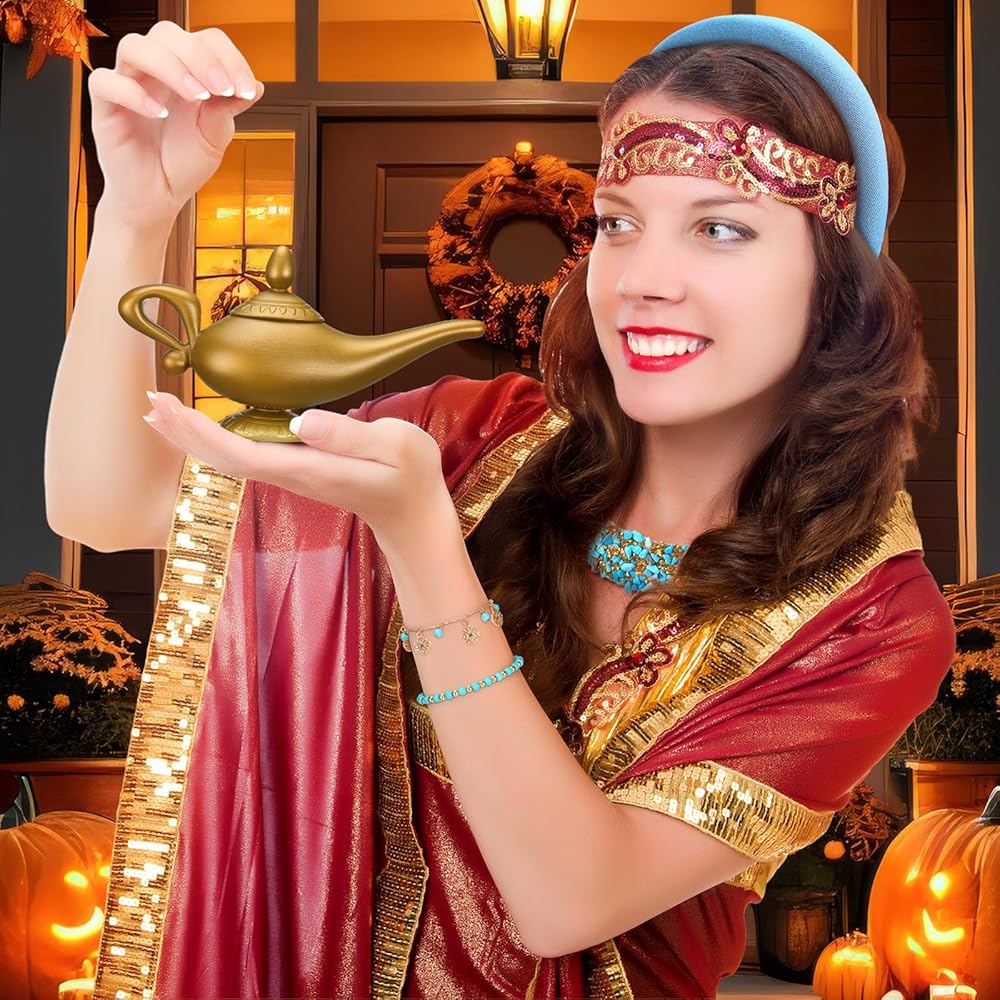 Designed in vivid color of blue, red, and gold, the accessories are striking and instantly noticeable, bringing a visually appealing contrast and adding a nice of color to any Arabian princess costume accessories set.