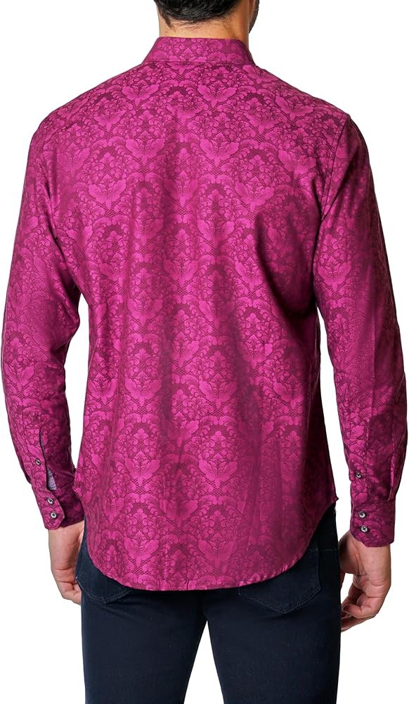 The Bayview Long-Sleeve Button-Down designer shirt will make the perfect addition to any wardrobe. This men's long-sleeve dress shirt is casual yet dressy enough for almost any occasion and features a classic fit, a point collar, a button front, and a stylish jacquard print. Tuck it into a pair of dress pants and add a tie, wear it with a blazer for a business-casual look for work, or wear it untucked over denim for a night out. This collared men's shirt will become a wardrobe staple for your professional and everyday outfits.