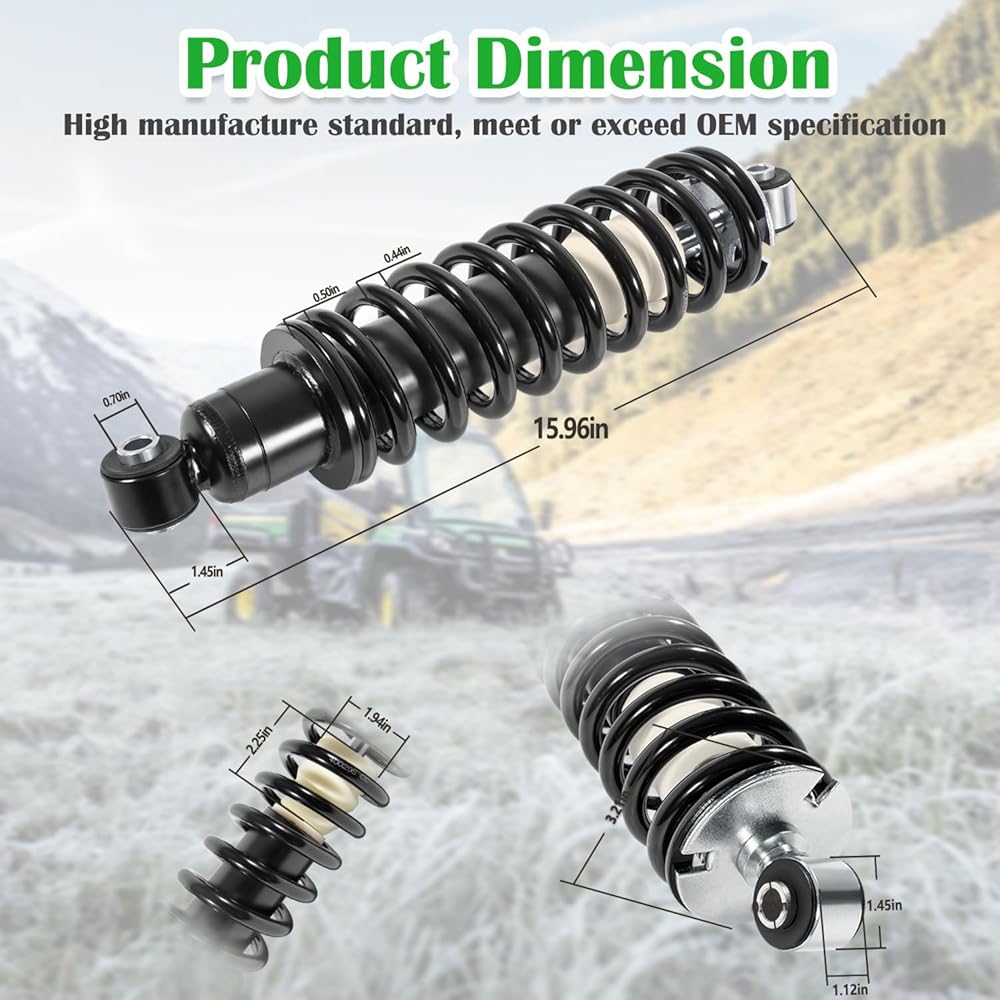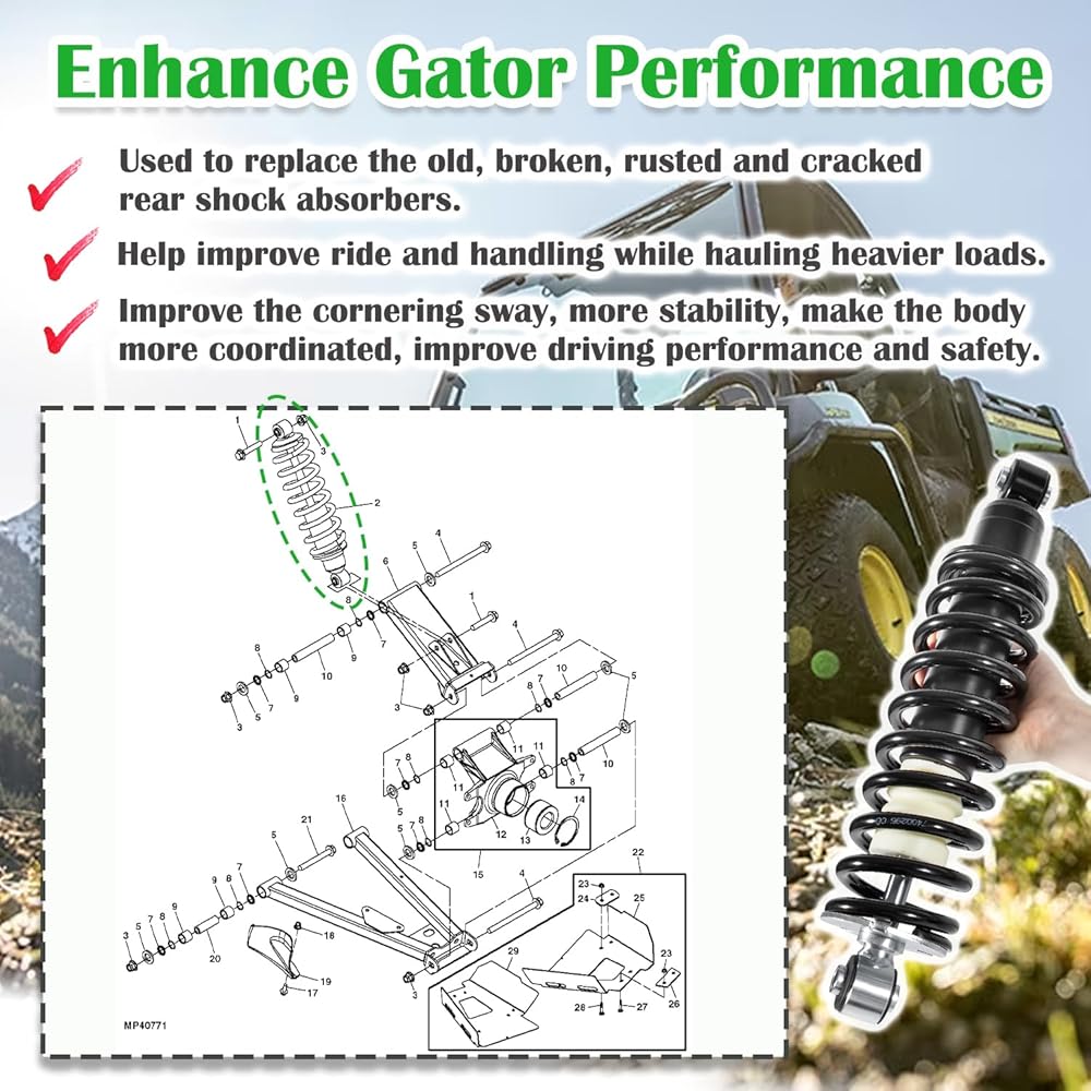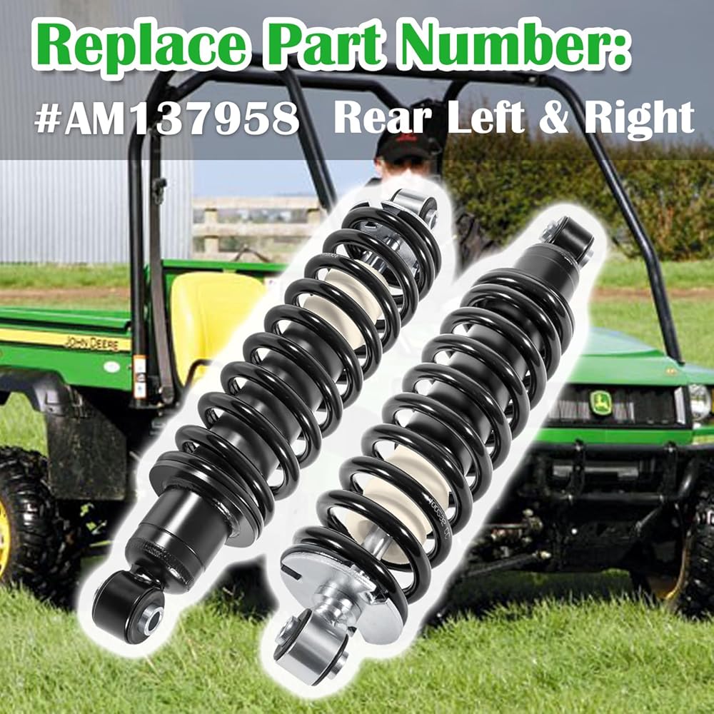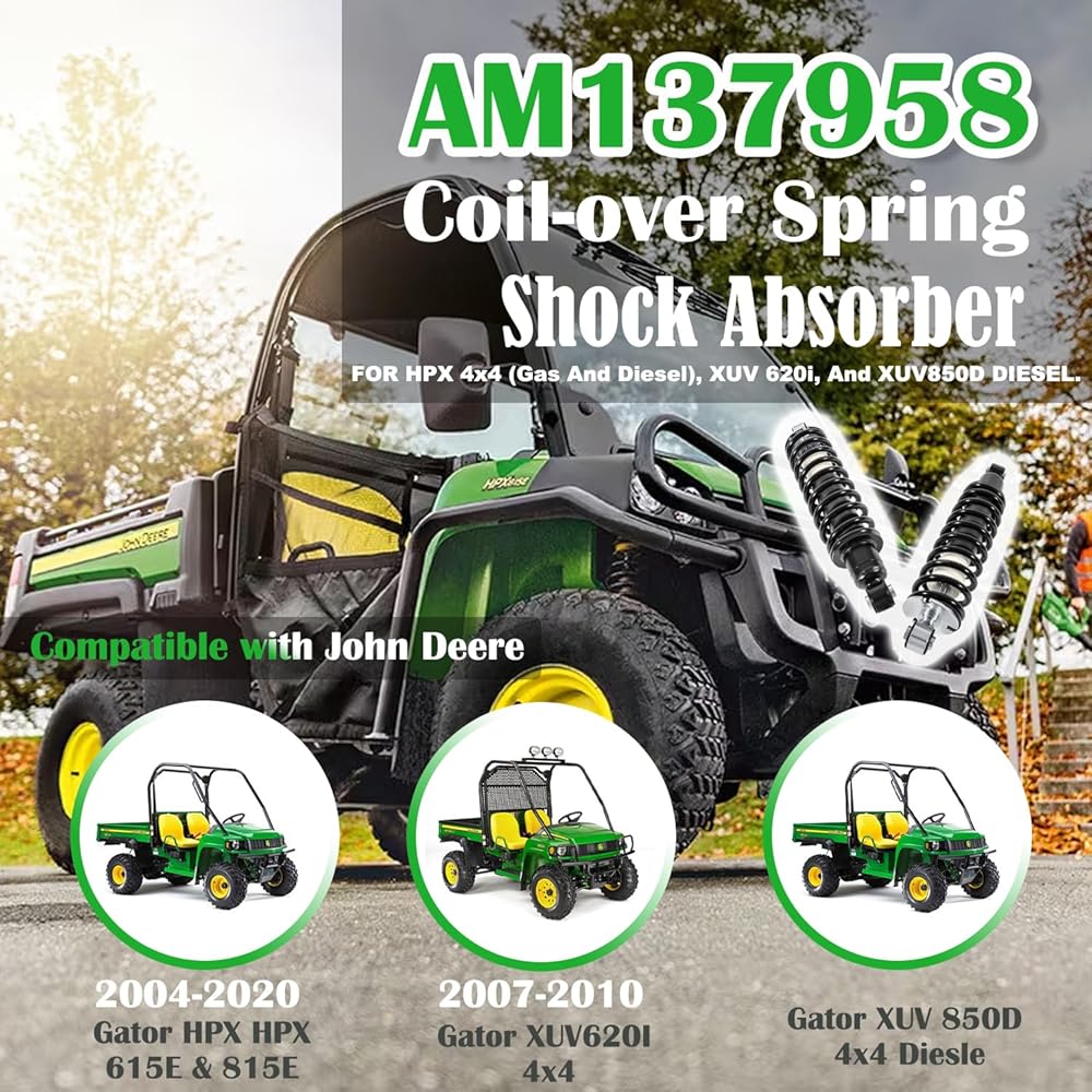 【Perfect Compatibility】The AM137958 Coil-over Spring Shock Absorber is designed to compatible with John Deere 2004-2020 Gator HPX HPX 615E 815E; 2007-2010 Gator XUV620I 4x4; Gator XUV 850D 4x4 Diesle. Please make sure the model before purchasing.