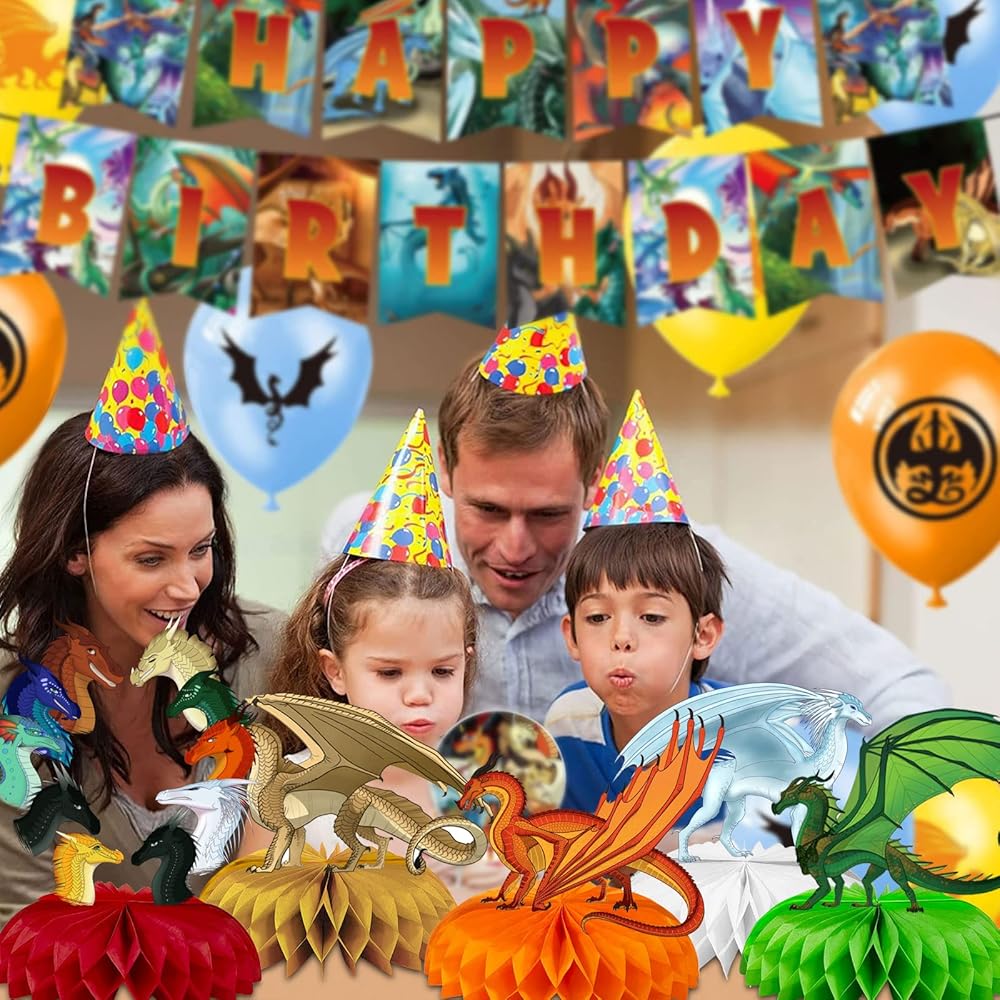 أجنحة النار ديكورات حفلات أعياد الميلاد، 9 قطع من قطع مركزية للحفلات ذات طابع التنين، أغطية الطاولات، أغطية الكيك، مستلزمات عيد ميلاد أجنحة النار للفتيات والفتيان، حمام الطفل