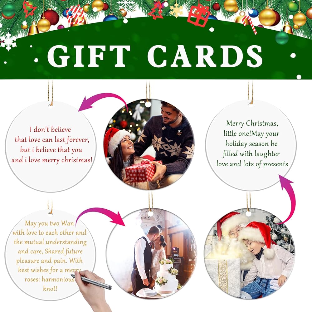 60 قطعة من الحلي الخزفية التسامي 3 بوصة زينة عيد الميلاد التسامي الفراغات السائبة مزدوجة الجانب عيد الميلاد haning الحلي المستديرة مع سلسلة ذهبية للحرف اليدوية لتزيين شجرة عيد الميلاد