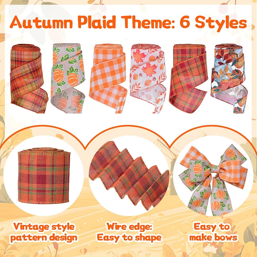 تحتوي مجموعة الأشرطة هذه على 6 لفات من أنماط مختلفة من شريط حصاد الخريف، كل لفة بعرض 2.5 سم وطول 5 ياردات. إجمالي 30 ياردة سيلبي جميع احتياجاتك الحرفية!