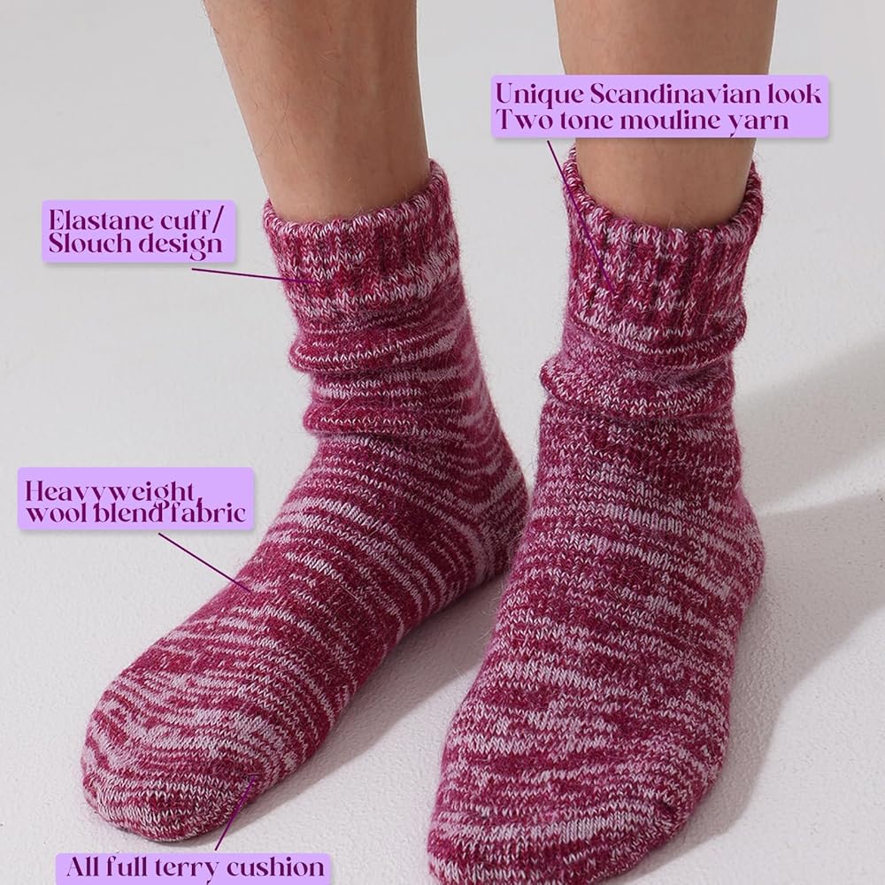 جوارب صوف ميرينو: هذه الجوارب الثقيلة المصنوعة من مزيج الصوف رائعة للمغامرات الخارجية. خيوط مولين ذات لونين تمنحها مظهرًا إسكندنافيًا فريدًا