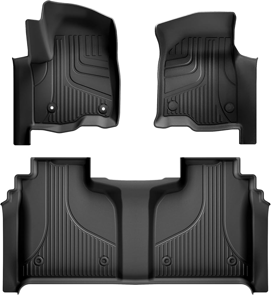 • 【ملاءمة مخصصة لسيارة Chevy Silverado 1500 / GMC Sierra Crew Cab】تتوافق سجادات الأرضية مع 2019-2025 Chevy Silverado 1500 / GMC Sierra 1500 & 2020-2025 Chevy Silverado / GMC Sierra 2500HD/3500HD Crew Cab، لا حاجة للتشذيب. تشمل سجادات السيارة سجادات أرضية الصف الأمامي والخلفي. يعتمد تقنية الفحص ثلاثي الأبعاد لالتقاط كل زاوية وشق لتوفير ملاءمة وتغطية مثالية.